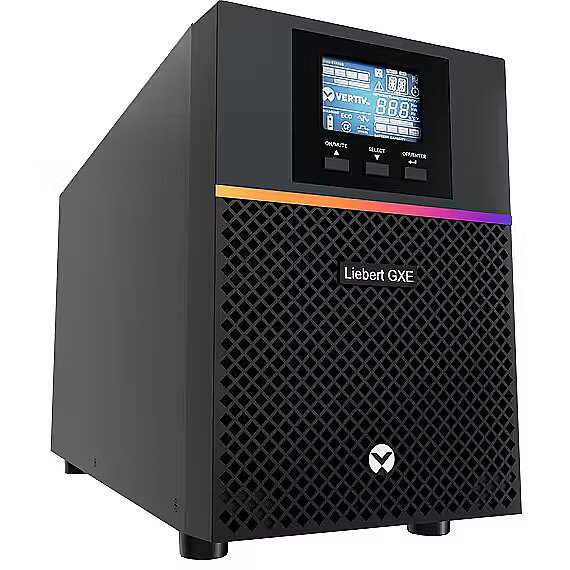LongDesc - The Vertiv Liebert GXE UPS is an affordable, efficient UPS with high output power factor (0.9PF), which enables continuous and reliable power to more connected devices. With online double conversion technology, this 1.5kVA compact tower UPS protects devices against many disturbances. With proven reliability, it is ideal for critical applications in financial, government, and manufacturing industries. It has an intuitive LCD for local monitoring, configuration, and control. The high efficiency in both online and ECO modes of operation (up to 95% in ECO mode) for this already affordable UPS further drives energy and operational costs savings. An optional network management card allows remote management and server shutdown via the optional network card or (free) Vertiv Power Insight software. In addition to reliable power, having multiple monitoring options make this compact UPS ideal for delivering best-in-class power protection to equipment at the edge of networks or in remote sites.