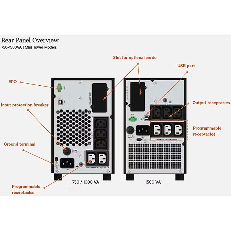 LongDesc - The Vertiv Edge uninterruptible power supply (UPS) is designed to protect server and networking equipment in distributed and Edge IT applications. This 1500VA UPS mini-tower offers powerful and reliable protection from downtime and damage caused by power spikes, swells and brownouts. Automatic Voltage Regulation (AVR) extends battery life and safeguards critical equipment. With sine wave output, this line interactive UPS ensures availability of network closets and Edge data centers. It operates at up to 98% efficiency in normal operation mode, providing energy savings. Add optional Vertiv Intellislot SNMP/Webcards for remote power management and OS's shutdown with free Vertiv Power Assist software. The Edge family has a wide range of power ratings, from 500VA up to 3000VA and is available in multiple form factors: mini-tower, 1U rack and rack/tower. It is easy to install, configure and operate and comes with intuitive, color LCD screen.