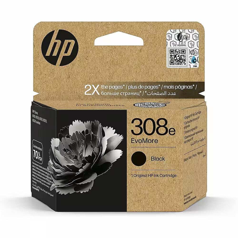 ShortSummaryDescription - HP 308e EvoMore Black Original Ink Cartridge, Standard Yield, Black, Pigment-based ink, 1 pc(s), 320 pages, Single pack