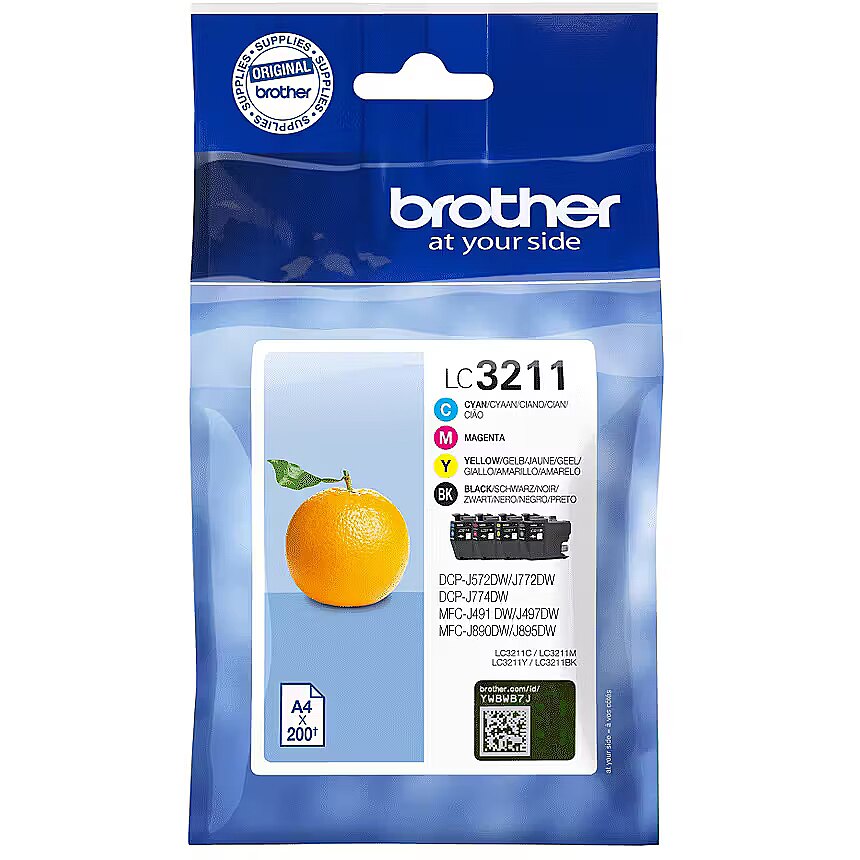 LongSummaryDescription - Brother LC3211VAL. Cartridge capacity: Standard Yield, Supply type: Multi pack, Colour ink page yield: 200 pages, Printing colours: Black, Cyan, Magenta, Yellow, Quantity per pack: 4 pc(s), Black ink page yield: 200 pages