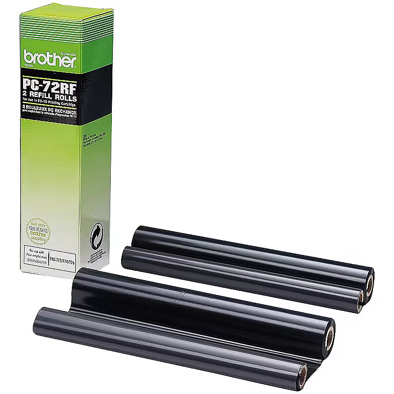 LongSummaryDescription - Brother PC-72RF. Page yield: 144 pages, Printing colours: Black, Compatibility: FAXT72 / FAXT74 / FAXT76 / FAXT78 / FAXT7 Plus / FAXT92 / FAXT94 / FAXT96 / FAXT98 / FAXT102 /.... Width: 60 mm, Depth: 60 mm, Height: 227 mm. Package weight: 413 g, Package type: Box. Products per pallet: 1620 pc(s), Pallet gross height: 15.9 cm, Pallet gross weight: 714.3 kg. Country of origin: Japan