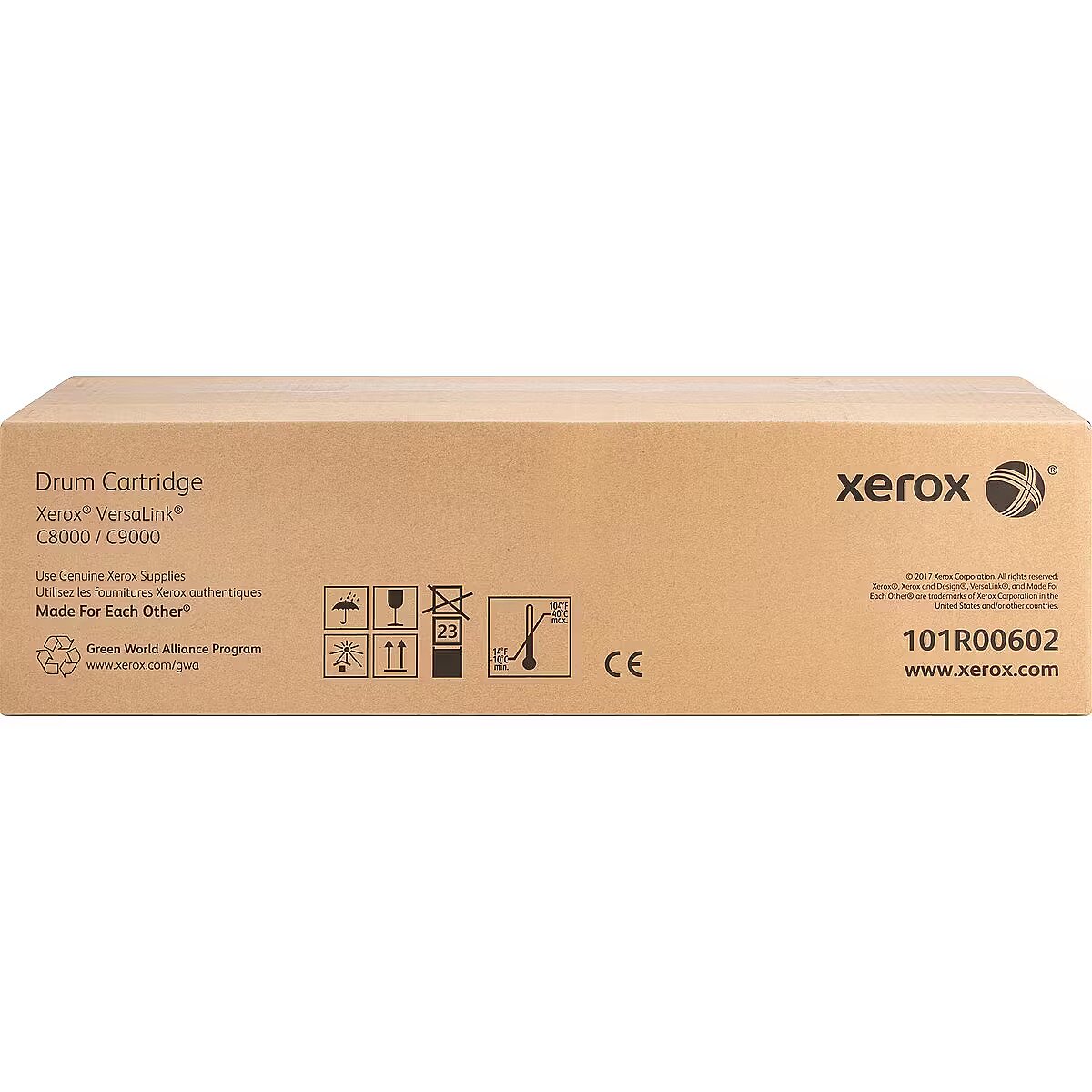 LongSummaryDescription - Xerox VersaLink C8000/C9000 Drum Cartridge (190,000 Pages). Type: Original, Brand compatibility: Xerox, Compatibility: Xerox VersaLink C8000 Colour Printer Xerox VersaLink C8000W Colour Printer Xerox VersaLink C9000.... Package width: 119.9 mm, Package depth: 557 mm, Package height: 162.1 mm. Print technology: LED printing. Export Control Classification Number (ECCN): EAR99. Package dimensions (W x D x H): 119.9 x 557 x 162.1 mm (4.72 x 21.9 x 6.38"), Package weight (imperial): 1.12 kg (2.46 lbs)