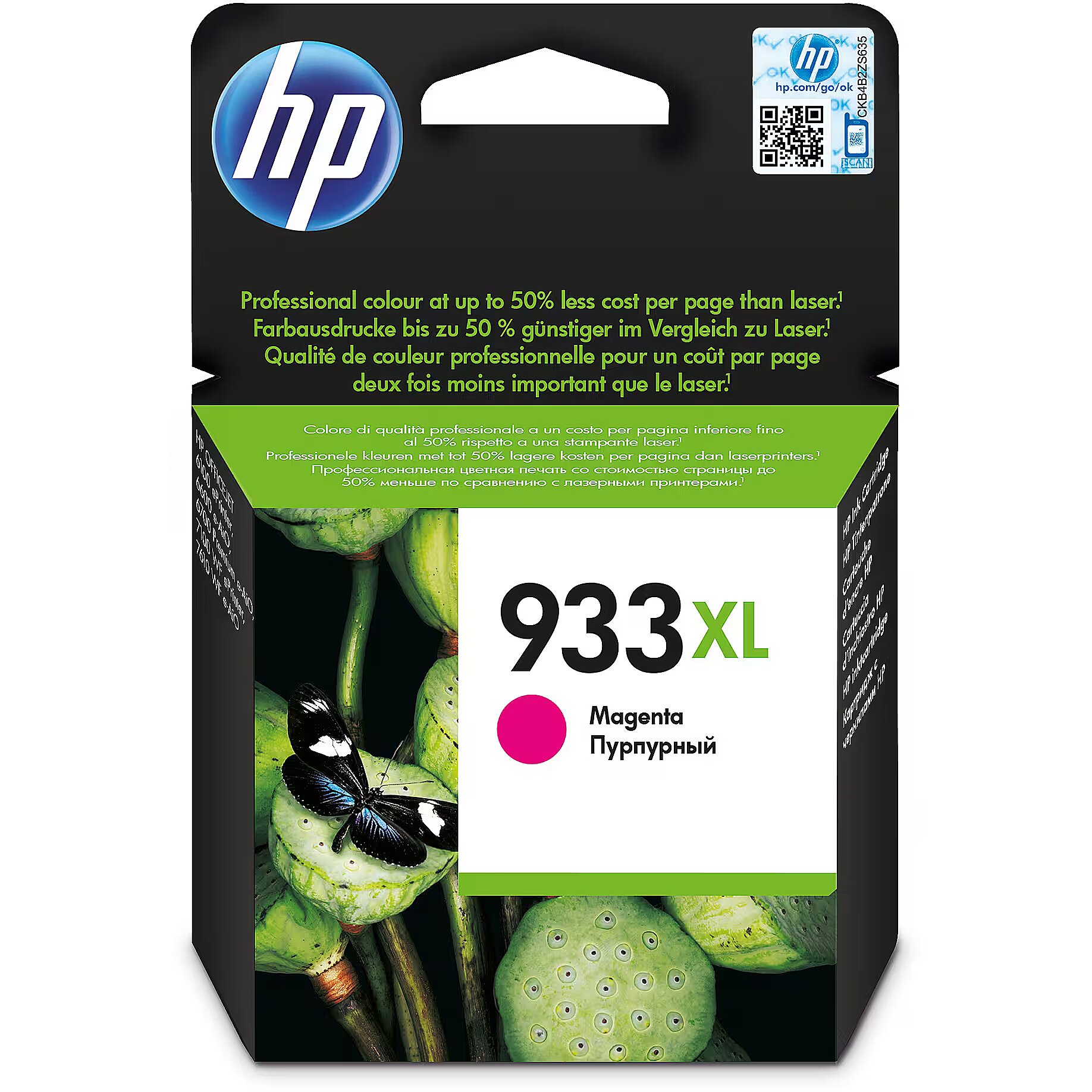 LargeDescHTML - HP 933 Magenta Officejet Ink Cartridge prints with professional-quality colour on page after page. Bring documents and marketing materials to life with outstanding colour vibrancy for a low cost per page and easily recycle your cartridges.Ensure dependable, high-quality results with every print. Use HP Officejet inks and impressive reliability features for worry-free consistency, page after page. HP printers, inks and papers are designed and tested together for optimal results.Add impressive colour to your business printing - get outstanding colour vibrancy using pigment inks designed for the office. Improve document quality, using papers with the ColorLok® logo. Colours are brighter for rich, vivid images and graphics.Print professional-quality colour for a low cost per page. Get better value with individually replaceable inks and high-capacity cartridges. Save when you print marketing materials at the office.