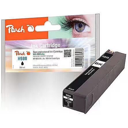 Technical_details - Ink black PI300-523 The Peach ink PI300-523 (black) is compatible with the HP D8J09A (980). It is suitable for the OfficeJet Enterprise Color Flow X 585 z MFP, X 550 Series, X 555 dn, X 555 xh, X 580 Series, X 585 dn MFP and X 585 f MFP printers. Type: Ink EAN: 7640162839433 Manufacturer No.: PI300-523 Print color: black Good For: Manufacturers | Hewlett Packard Suitable for: model | OfficeJet Enterprise Color Flow X 585 z MFP, X 550 Series, X 555 dn, X 555 xh, X 580 Series, X 585 dn MFP, X 585 f MFP Consumption: volume | 250ml Weight: 406 grams