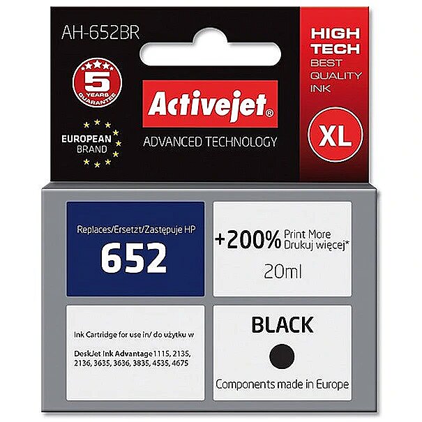 productName - Activejet AH-652BR ink (replacement for HP 652 F6V25AE; Premium; 20 ml; black)