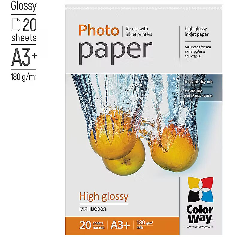 ColorWay High Glossy Photo Paper, 180g/m, A3+, 20pcs.