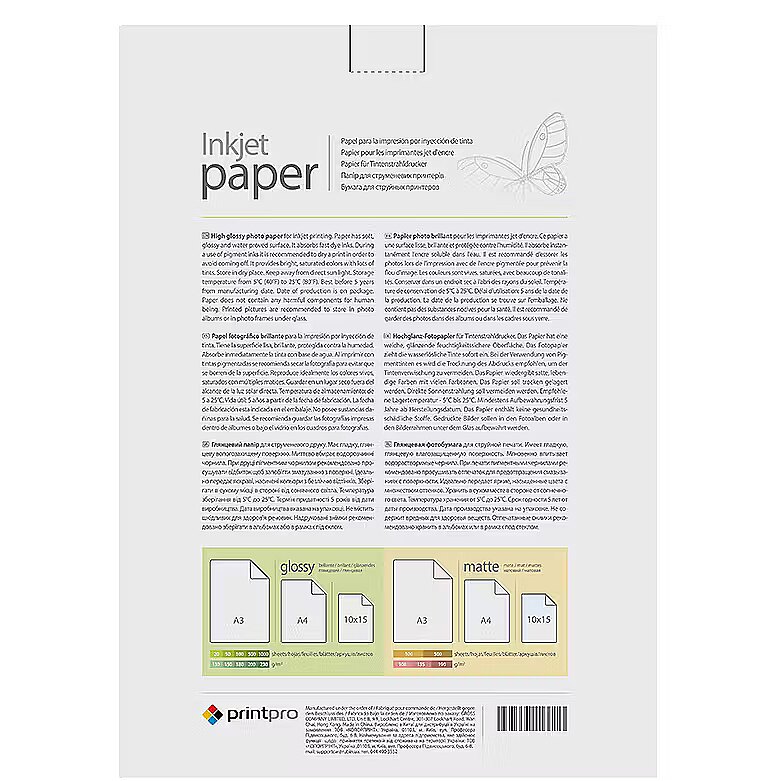 Technical details > Producer product name - PrintPro Photo Paper, 500 sheets