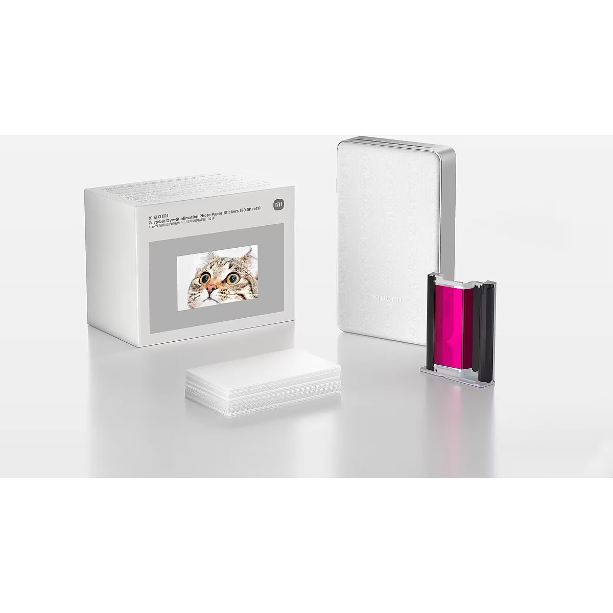 description_en - Store all your favorite moments on this 5 × 7.6 cm photo paper, perfect for the Xiaomi Portable Photo Printer Pro. The photo paper has an adhesive back that turns photos into stickers. Sticker photo paper For Xiaomi Portable Photo Printer Pro Photo size: 5 × 7.6 cm Dye sublimation printing technology Pack of 50 sheets and 5 ink cartridges