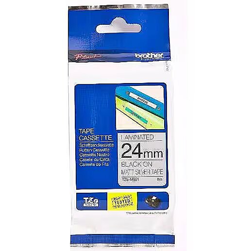 Brother Tape Brother 24mm BLACK ON SILVER (MAT) TAPE/METALIC