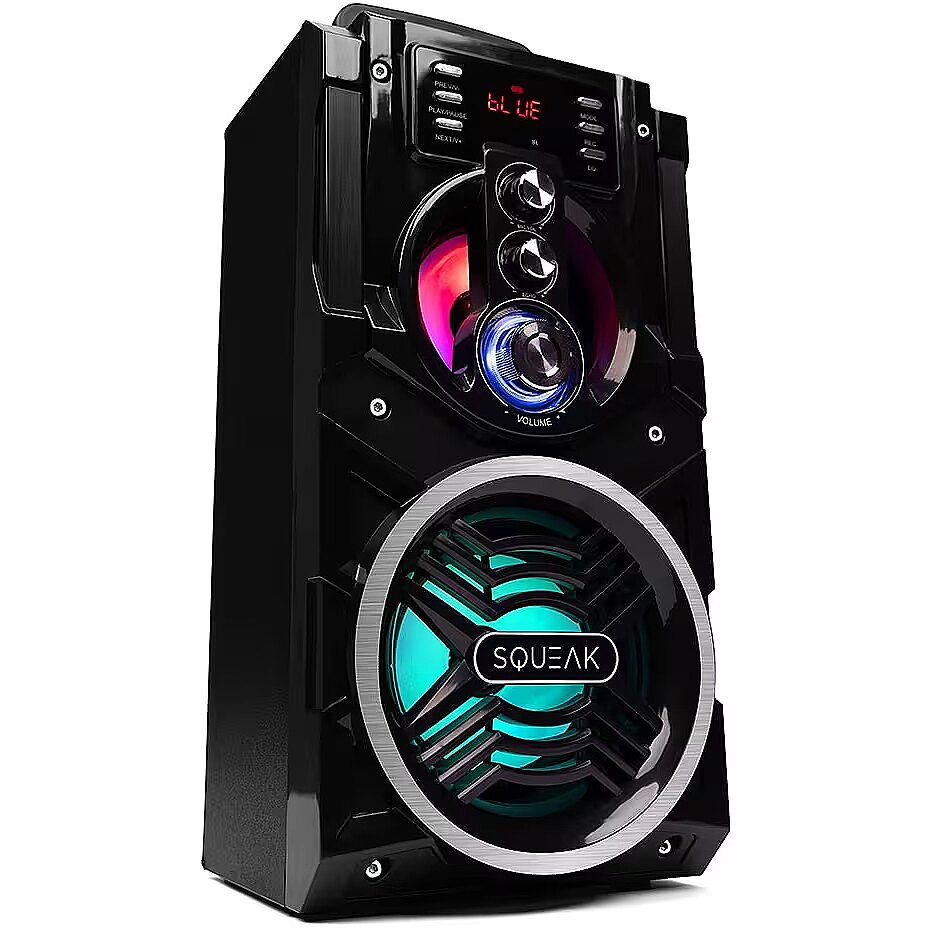 Description - Discover a new sound quality This is Squeak BeatBoxer SQ1000 - a portable Bluetooth speaker that will introduce you to a new dimension of listening to music. Whether you're planning an outdoor picnic, a beach party or a relaxing evening on the terrace - BeatBoxer is the perfect companion for any occasion. Bluetooth version 5.1 + EDR Stable, fast connection to your smartphone. Streaming music has never been so easy! FM radio with station search Whether you're looking for the latest hits, classic tunes or live coverage, our speaker will let you find the perfect station instantly. USB-C charging socket Fast and effective charging using a modern USB-C socket (cable included). The loudspeaker housing is made of MDF The housing is designed with attention to detail. The BeatBoxer speaker looks as good as it sounds. Built-in Li-Ion battery Guarantees up to 7 hours of uninterrupted operation. Enjoy long-term listening to music without the need for frequent charging. Karaoke function Your own concert? Now it's possible! Sing wherever you want and whenever you want.