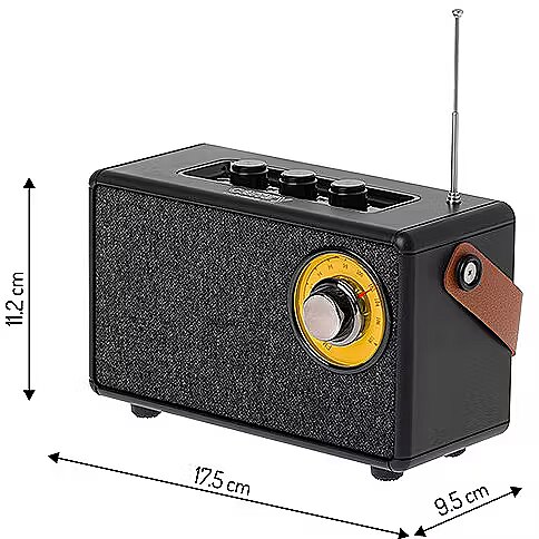 Key Features: Bluetooth 5.1: The latest Bluetooth technology for stable connectivity and high sound quality. 5-Hour Playback: Enjoy music for extended periods at 50% power without needing to recharge. Fast Charging: Only 2 hours required for a full charge. FM Function: Wide frequency range from 87 to 108 MHz to receive your favorite radio stations. Analog FM Dial: A traditional way to select radio stations. AUX Function: Connect your devices using an AUX cable. TWS (True Wireless Stereo): Connect two speakers to operate together for a stereo effect. SD Card Playback: Convenient option for playing music directly from a memory card. USB Playback: Ability to play music files from a USB flash drive. Supports MP3 and WAV: Compatible with popular music formats. USB-C Charging: Modern and fast charging technology.