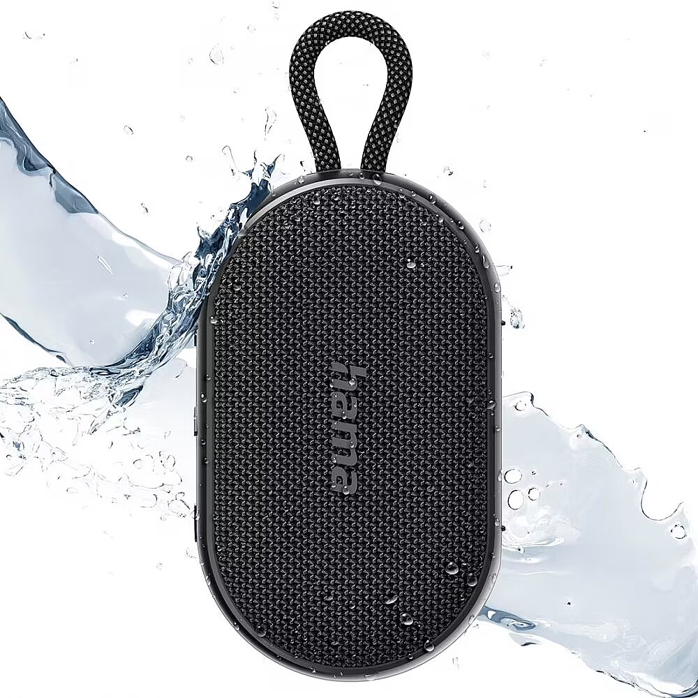 Głośnik bezprzewodowy Hama z mocą 6 W zapewnia czysty i wyrazisty dźwięk w każdym miejscu. Niewielki rozmiar i praktyczna pętla do zawieszania sprawiają, że możesz zabrać go wszędzie na basen, plażę czy trening.
