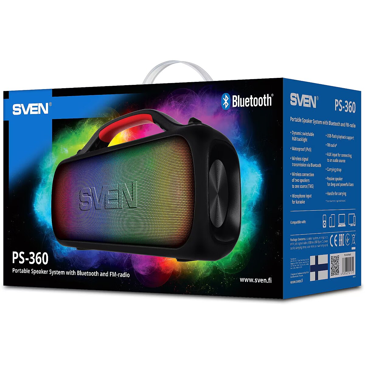 ProductDescription - Speaker SVEN PS-360, black (24W, Waterproof (IPx5), TWS, Bluetooth, FM, USB, 3000mA*h)
