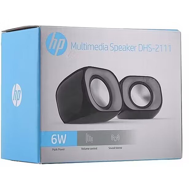 LongSummaryDescription - HP DHS-2111. Recommended usage: Universal. Speaker type: 2-way, Audio output channels: 2.0 channels, Number of drivers: 2. Connectivity technology: Wired. RMS rated power: 6 W, Frequency range: 200 - 16000 Hz. Product colour: Black, Silver