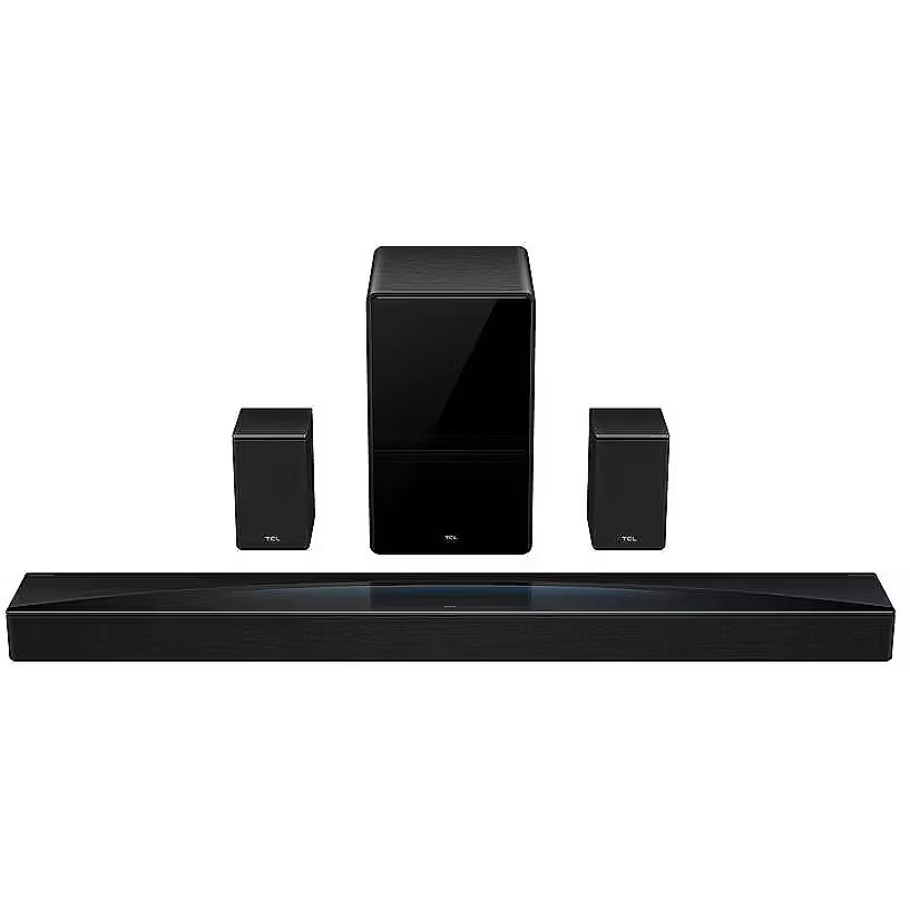 LongSummaryDescription - TCL Q Q85H Class 7.1.4 Channel Sound Bar with Dolby Atmos, Wireless Subwoofwer, and Wireless Surround Speakers. Audio output channels: 7.1.4 channels, RMS rated power: 510 W, Audio decoders: DTS-HD Master Audio, DTS:X, Dolby Atmos, Dolby Audio, Dolby Digital, Dolby Digital Plus, Dolby.... Soundbar speaker RMS power: 30 W, Woofer diameter (imperial): 20.3 cm (8"). Subwoofer type: Active subwoofer, Subwoofer connectivity: Wireless, Subwoofer RMS power: 180 W. Product colour: Titanium, Colour name: Dark titanium, High Dynamic Range (HDR) technology: Dolby Vision. Connectivity technology: Wired & Wireless, Bluetooth codec: A2DP, AVRCP, SBC, AAC, Wi-Fi standards: 802.11a, Wi-Fi 5 (802.11ac), 802.11b, 802.11g, Wi-Fi 4 (802.11n)