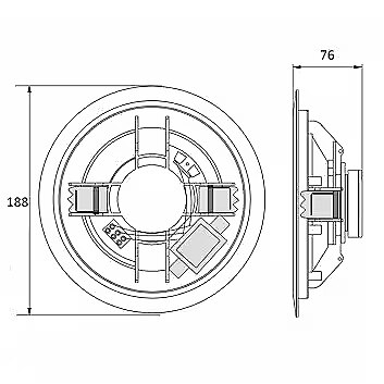 Installation in a suspended ceiling is exceptionally quick and easy thanks to the spring clamp mechanism. The speaker simply needs to be inserted into a prepared mounting cut-out with a diameter of 165 mm sturdy spring-loaded clamps will automatically lock the enclosure in place, ensuring stability and secure mounting without the need for a single screw.