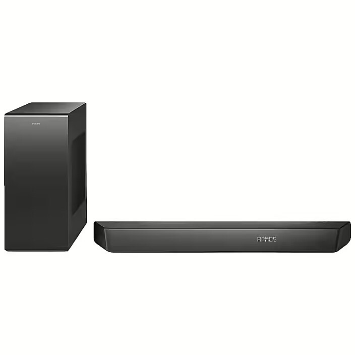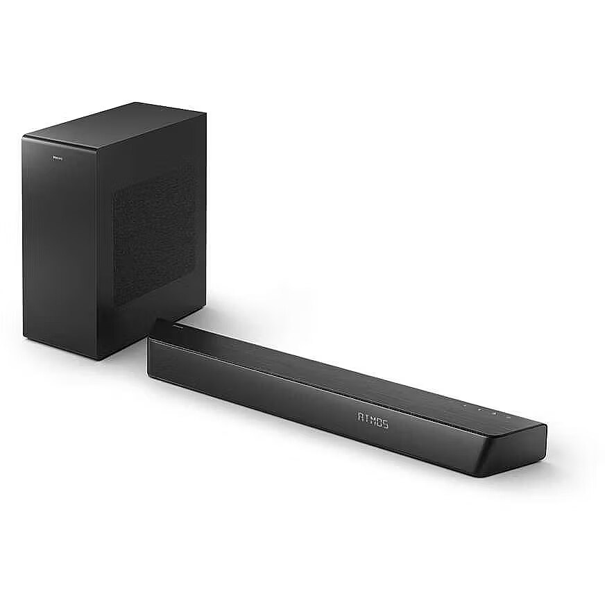 LongDesc - 3.1 channels: 6 integrated drivers, 8" powerful subwooferWhether you're relaxing to your favourite playlist or surrounded by crackling laser fire, this soundbar's 3.1 channels and wirelessly connecting, 8" powerful subwoofer immerse you in the action, surrounding you with rich, vibrant sound.Dolby Atmos. Cinematic soundThree channels reproduce height as well as depth, creating a virtual three-dimensional surround sound. Whether it's spaceships flying overhead or the crowd in an arena, you'll feel the drama flow above and around you.Two angled speakers for wider soundWiden the sound! Two extra tweeter speakers at either end of the soundbar broaden the audio to give you a clear separation of instruments. Pick them out easily and hear every instrument in the orchestra like you're really in the hall!Roku TV Ready™. Simple setup. One remoteThis Philips Soundbar is Roku TV Ready certified. That means you'll enjoy a simple setup, one remote and quick settings when you pair it with a Roku TV. Roku, the Roku logo, Roku TV, Roku TV Ready and the Roku TV Ready logo are trademarks and/or registered trademarks of Roku, Inc. This product is Roku TV Ready-supported in the United States, Canada, Mexico, the United Kingdom and Brazil. Countries are subject to change. For the most current list of countries in which this product is Roku TV Ready-supported, please email rokutvready@roku.com.Stadium EQ Mode. Bring the stadium homeExperience the excitement of live sports, right there in your living room. Stadium EQ Mode immerses you in ambient crowd noise, as if you were sitting in the stadium! Be thrilled by every crucial moment and still hear crystal-clear commentary.Conveniently connect all of your favourite sourcesStream via Bluetooth. Connect via Audio-in, Optical in or USB and enjoy amazing sound. HDMI pass-through for 4K and HDR video sources, as well as Dolby Vision compatibility let you connect with no loss of video quality. An experience like no other!HDMI eARC. Enjoy the latest surround-sound formatsLose nothing from the mix when you're immersed in the drama. This soundbar is compatible with HDMI eARC, a high-speed connection that lets you experience the full effect of advanced audio formats like Dolby Atmos.Philips EasyLink to control the soundbar with your TV remoteThis fantastic soundbar features Philips Easylink technology for maximum ease and convenience. Whether you want to adjust the EQ modes, bass, treble or volume settings on your device or soundbar, only one remote control is needed!