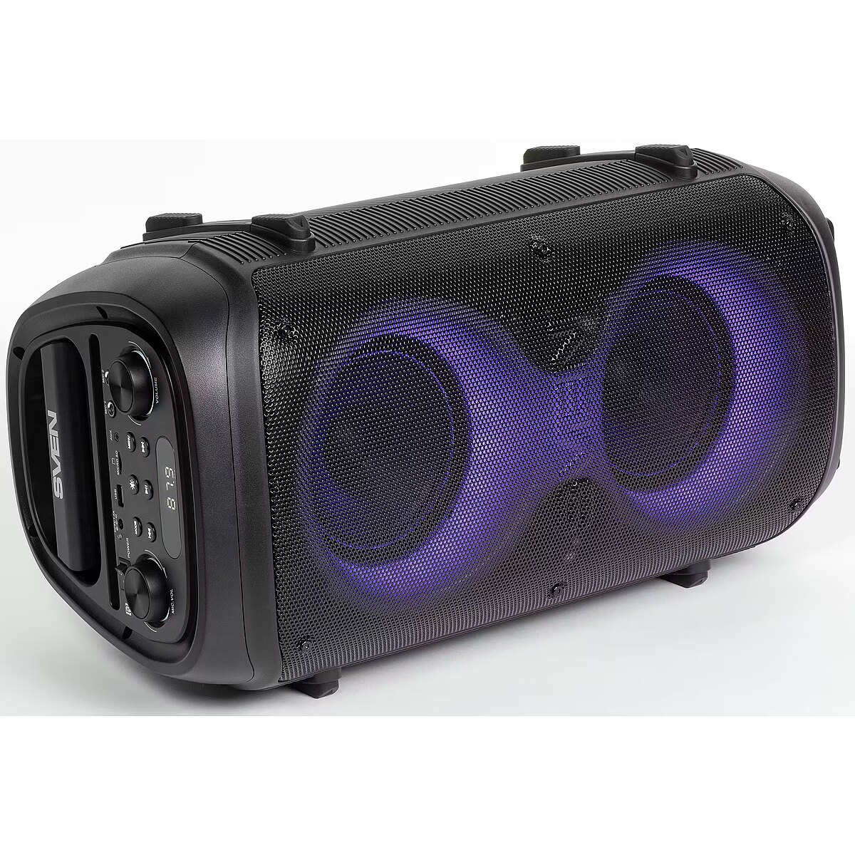LargeDescHTML - INTERACTIVE LIGHT SHOW FOR A FUN PARTYMulticolor interactive backlight supports several operation modes. Bring the party to live, configuring the desired lighting design of music records! The backlight is visible even during the day, and in the dark it looks unbelievable!WIRELESS CONNECTION OF TWO SPEAKERS TO A SINGLE SOURCE (TWS)Connect two speakers using a wireless channel and create a stereo pair based on TWS technologies, and YOUR party will be legendary! Strong, broad format stereo sound and interactive illumination show will create unforgettable music images!KARAOKE PARTY AT YOUR HOME!Connect two mics to the speaker, in order to discover your singer's talents. Configure the desired sound level of your voice on the control panel. A light echo will add clarity and extra volume to vocals. Delight your close ones with live performance of your favorite tracks!WIRELESS SIGNAL TRANSMISSION VIA BLUETOOTHWireless sound transmission via Bluetooth will create a stable connection to the gadget at up to 10 m distance. It's not a problem to quickly turn on background music, listen to a podcast or audiobook — just "introduce" your smartphone to the acoustic system, and from then on the process will take a few seconds.YOUR FAVORITE TRACKS ON USB FLASH OR MICROSD CARDCollection of favorite tracks on USB flash or microSD memory cards is a great option for music lovers who have already made their choice. Stable playback of audio files without connecting additional devices!CONTROL PANEL WITH LED SCREENLED display provides information about radio station frequency, sound level, duration of a track when played back from USB/microSD. Control panel allows select audio input, configure backlight mode and manage a lot of other functions.REMOTE CONTROLSound level and a lot of different settings of the acoustic system can be configured using an easy-to-use remote control.EMBEDDED FM RECEIVERDon't have your collection of favorite tracks close at hand? No worries! Embedded FM radio allowing to select radio frequency on LED screen will offer great variety of tracks 24/7, helping create a perfect atmosphere with a variety of melodies around the clock.. A cable that connects to AUX socket can serve as an antenna.WIRED CONNECTIVITY TO AN AUDIO SOURCEFor a wired connection of the speaker to transmitting devices, the delivery set includes an appropriate audio cable. Cable connection ensures maximum quality and stable connectivity, supporting complete and effective usage of acoustic resources of the device.TWO POSITIONS FOR A GREAT SOUNDIn vertical position the speaker takes minimum space, and in horizontal position allows to achieve a vivid stereo effect. You can select any position, because the legs are located on the bottom and on the side wall of a speaker.SMARTPHONE WHERE IT'S NEEDEDOn a top panel there is a smartphone stand, helping conveniently locate the gadget, ensuring its steadiness and security.RELIABLE WHOLE HANDLE FOR CARRYING AROUNDA convenient and durable handle for carrying around gives integrity to a dynamic image of a speaker.QUICK CONNECTION VIA BLUETOOTH USING NFCNFC technology allows to synchronize your device with a speaker in a single tap and automatically connect it in a moment, and after that you can immediately start listening to your favorite content.