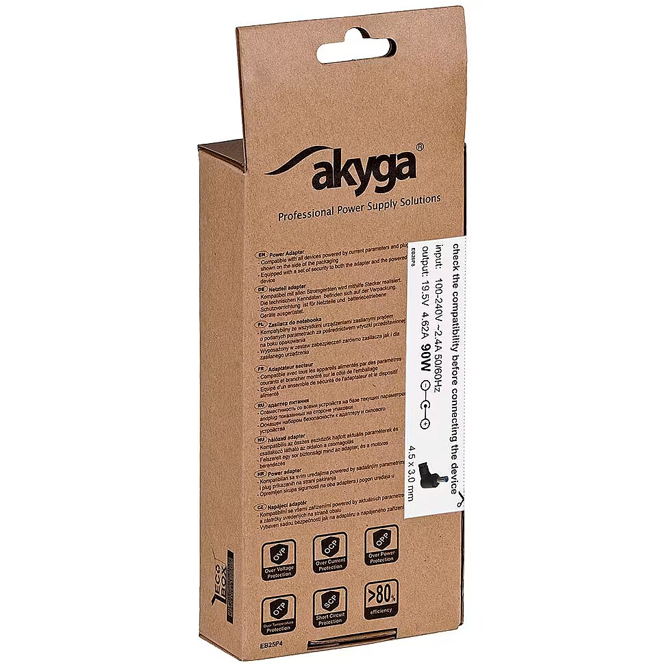 productName - Akyga notebook power adapter AK-ND-26 19.5V/4.62A 90W 4.5x3.0 mm + pin HP power adapter/inverter Indoor Black