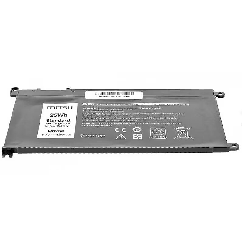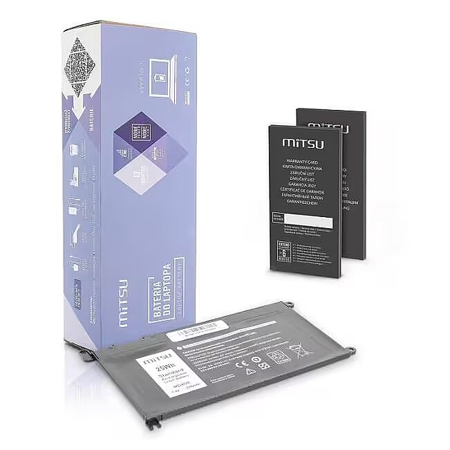Description - Battery for Dell Vostro 14 (5468), Inspiron 15 (5568) High quality with a reasonable price, safety and ecology are the features of MITSU batteries, which have already been appreciated by thousands of Europeans, mainly in Poland, the Czech Republic and Slovakia. It is the result of combining the best components with attention to every stage of the production process, supported by constant quality control, as well as an emphasis on device safety. MITSU is: High class, proven, environmentally friendly class A lithium-ion cells, Actual declared capacity Much slower decrease in nominal capacity compared to other cheaper substitutes, Low susceptibility to spontaneous discharges, No memory effect Factory protection against overcharging and deep discharge, as well as against OVP overvoltage, OTP overheating, SCP short circuit and OCP overload, Reliable and long time between successive charging cycles, 6 levels of quality control. By buying this laptop battery you can also be sure that at the same time you care for the natural environment. The manufacturer closely cooperates with organizations dealing with broadly understood ecological education, supporting selective collection and maximum waste recovery. MITSU batteries are products with CE, ROHS and ISO9001 certificates.