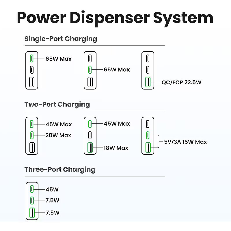 LongDesc - "*Input: 100-240V~50/60Hz 1.8A Max*USB-C1 Output:5.0V⎓3.0A/9.0V⎓3.0A/12.0V⎓3.0A/15.0V⎓3.0A/20.0V⎓3.25A 65W Max*USB-C2 Output:5.0V⎓3.0A/9.0V⎓3.0A/12.0V⎓2.5A/15.0V⎓2.0A/20.0V⎓1.5A 30W Max *USB-A output:5.0V⎓3.0A/9.0V⎓2.0A/12.0V ⎓1.5A/10.0V ⎓2.25A22.5W Max*Total Output:65W Max*Compatible with: PD3.0 (PD2.0)QC4.0+ (QC4.0/QC3.0/QC2.0) FCP/SCP/AFC/PPS/PPS2.0BC1.2--5V1.5A *UL,FCC, CE Certified"