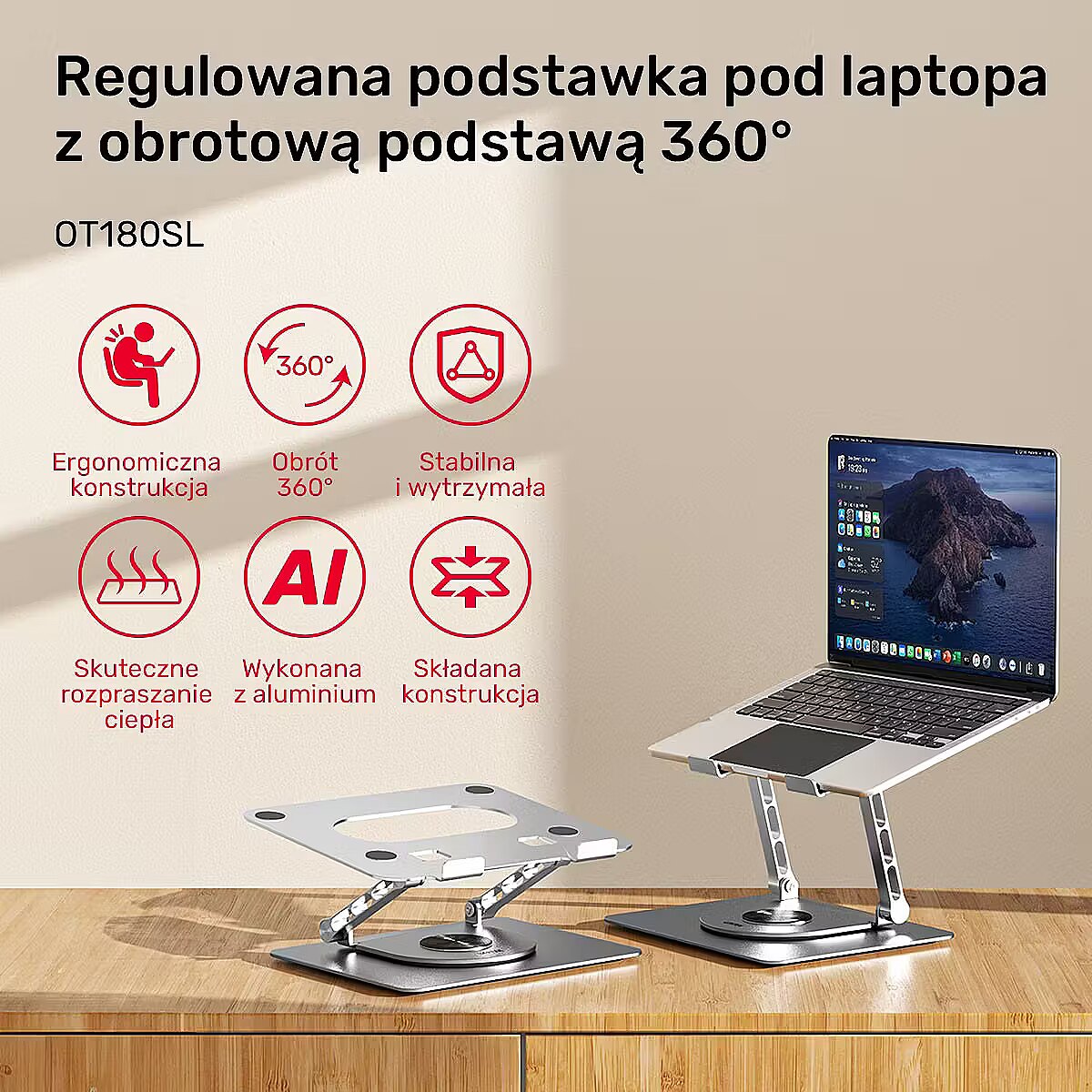ShortDescription - Unitek Podstawka pod laptopa regulowana 360°, 10''- 16''