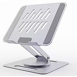 Description - 15.6-inch Foldable Notebook Stand Foldable, rotating, metal notebook stand with smooth height adjustment. 360-degree rotation and adjustable height allow you to position your screen at the optimal viewing angle. The open-structure notebook tray provides good ventilation and increased air circulation for notebooks. The protective shelf and silicone pads ensure notebook safety and stability. The practical folding mechanism allows for space-saving storage or transport.