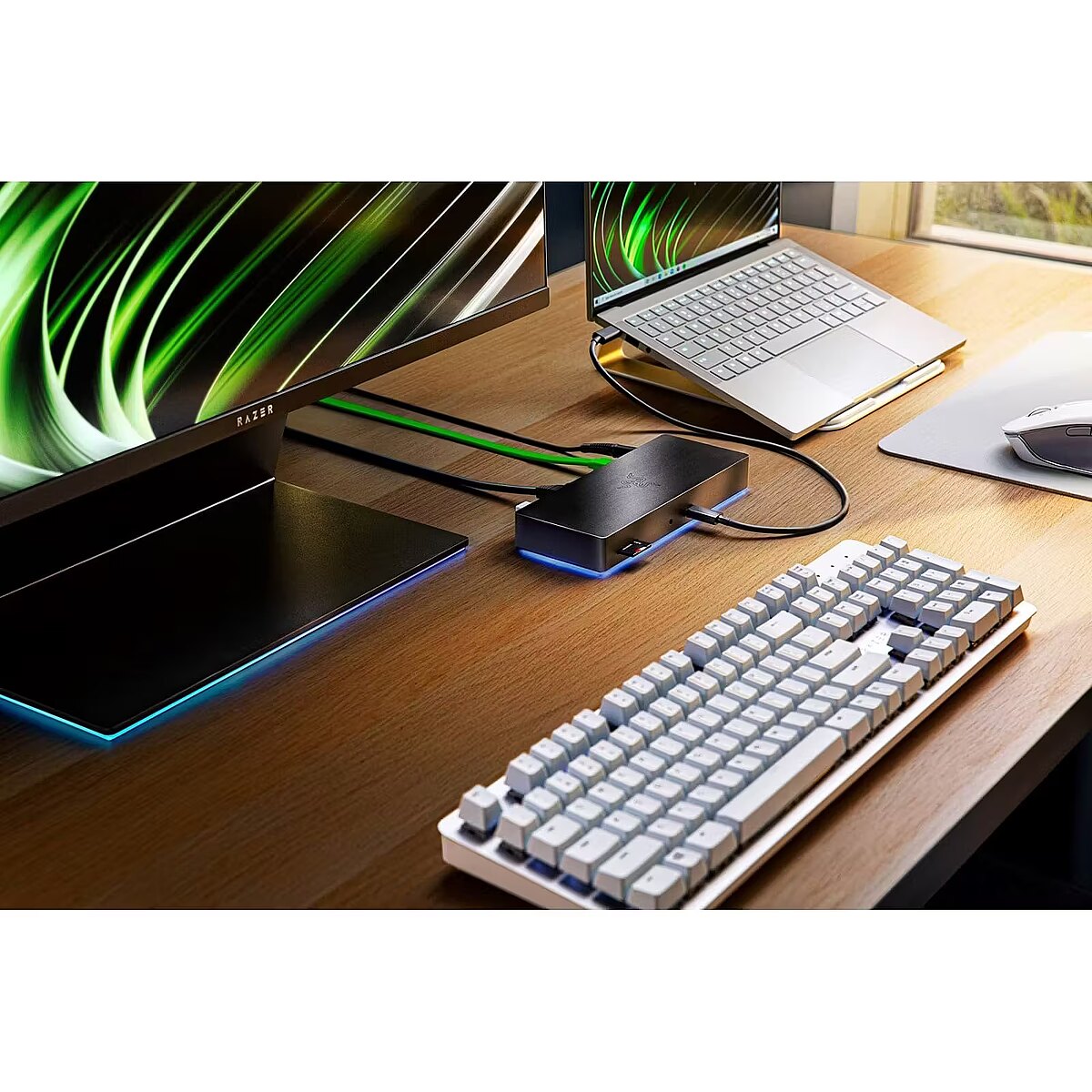 Keep your USB-C powered laptop topped off at all times using the dock’s built-in feature to charge your system while simultaneously powering all other connected devices. Powered By Razer Chroma RGB