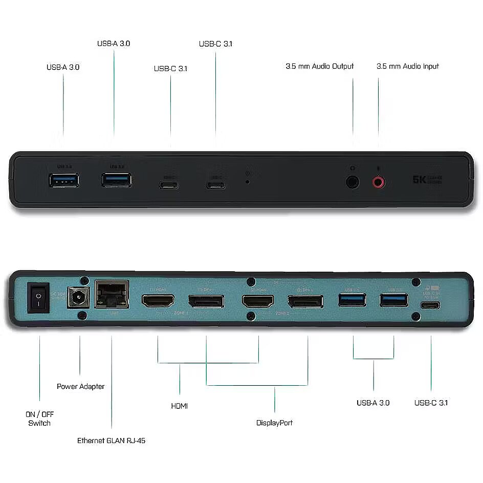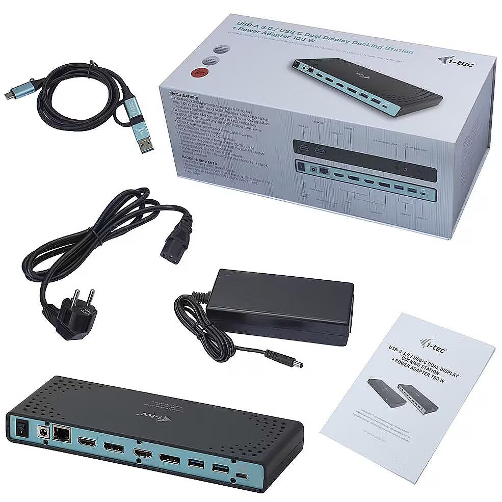 ShortSummaryDescription - i-tec USB 3.0 / USB-C / Thunderbolt 3 Dual Display Docking Station + Power Delivery 65W, Wired, USB 3.2 Gen 1 (3.1 Gen 1) Type-C, 65 W, 3.5 mm, 10,100,1000 Mbit/s, Black, Turquoise