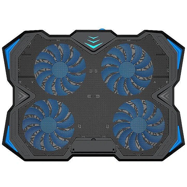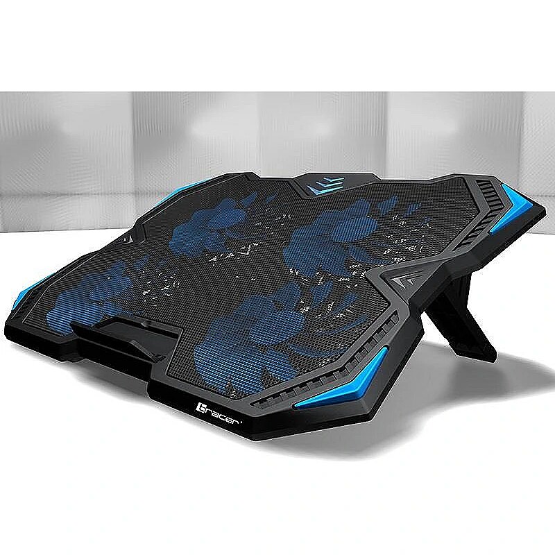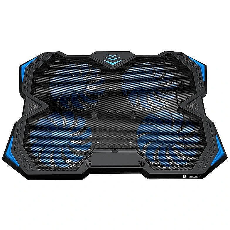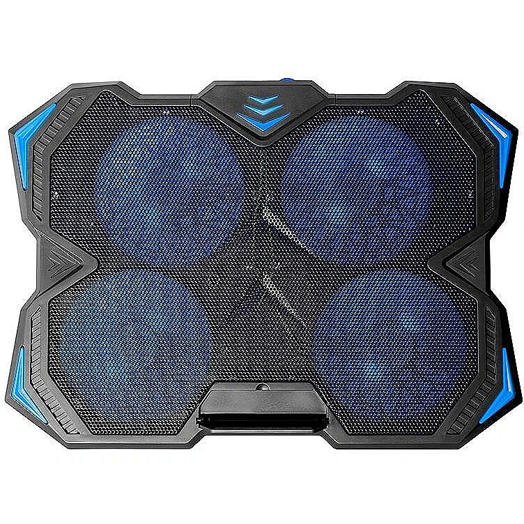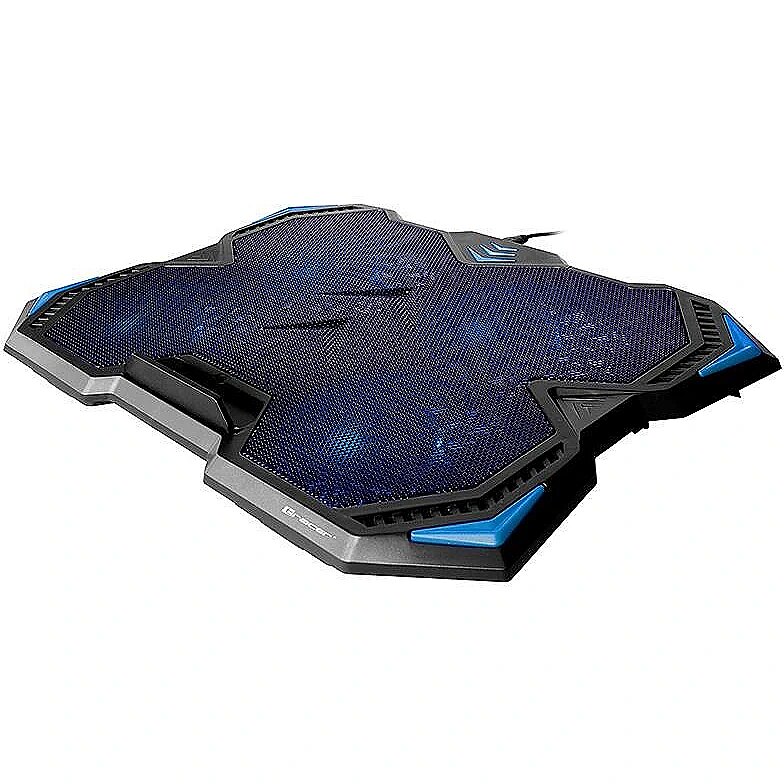 Four efficient and very quiet ones are responsible for cooling - 140mm fans rotating even up to 1000rpm. The station's appearance is due to high quality plastic and delicate blue LED backlight fans. The station will easily accommodate even large notebooks with a 17-inch screen size. The laptop is secured against sliding off the station with a wide blockade.