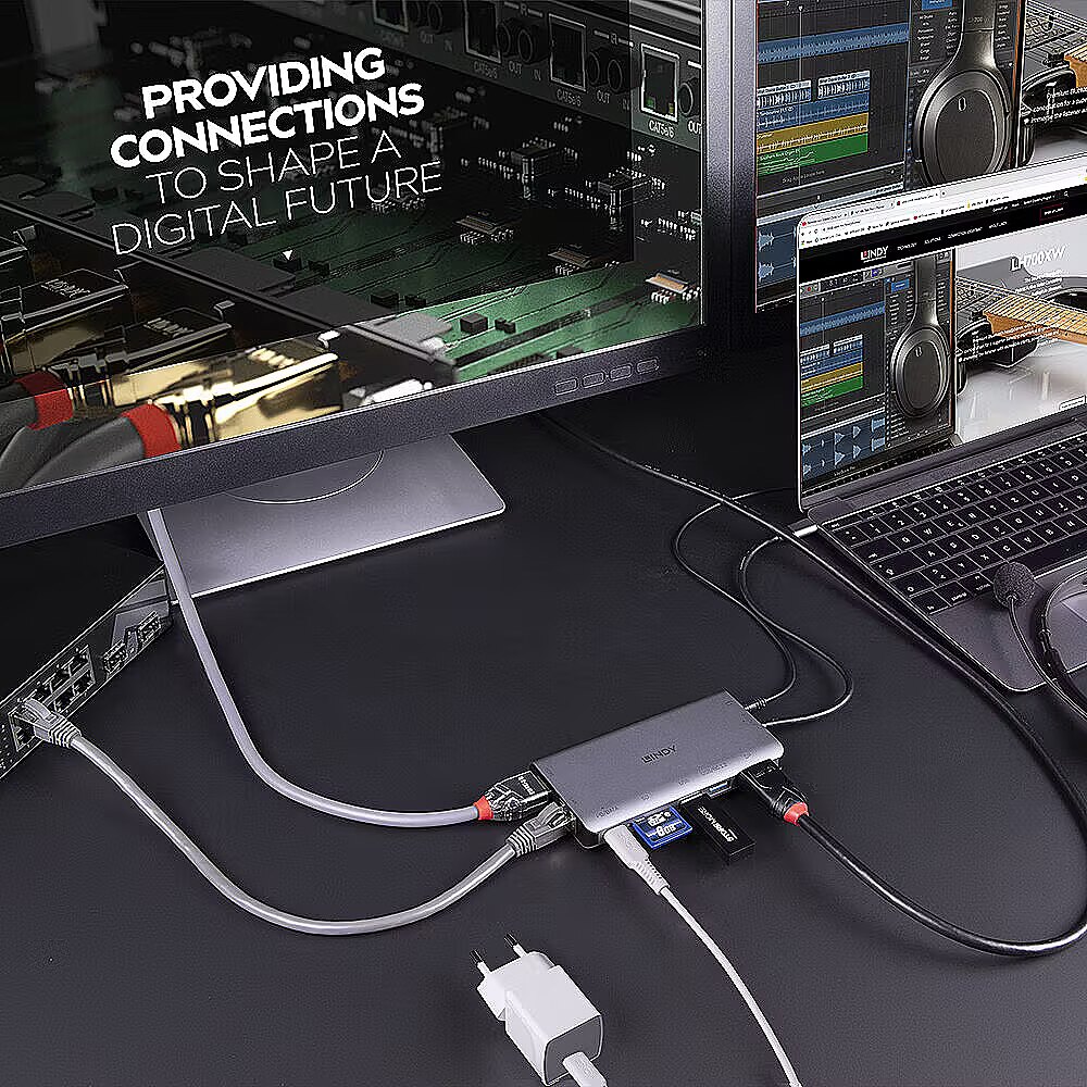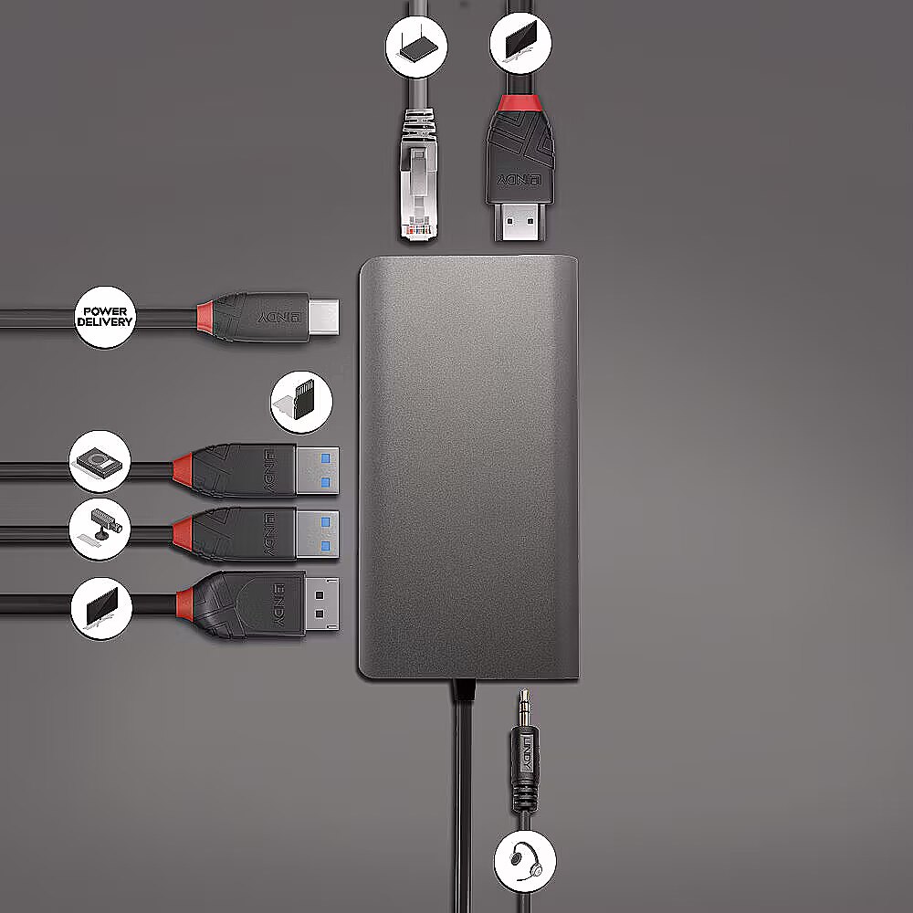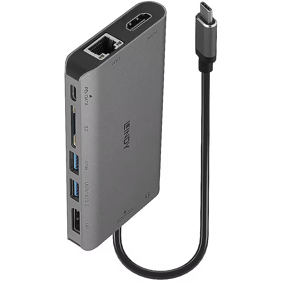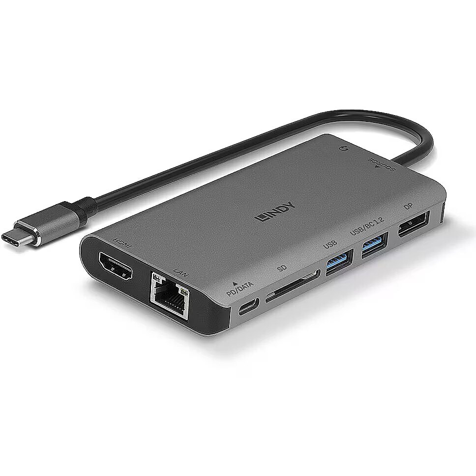 LongDesc - The DST-Mini XT is Lindy's feature-packed mini docking station. Housed in robust aluminium, this compact dock has been designed for those who need greater additional connectivity, in a portable form factor.Extended DisplaysThe DST-Mini XT can support a single extended display at 4K@30Hz through the HDMI or DisplayPort connections. Dual display setups are also possible with crisp Full HD 1080p. This makes this dock the perfect solution for any creative, data analyst or intense spreadsheet worker.Added ConnectivityThis docking station can unlock a world of connectivity for your device. Delivering DisplayPort, HDMI, Gigabit Ethernet, SD Card Slot, USB-C, SuperSpeed USB Type A ports (5Gbps) and a combined 3.5mm headphone jack. To deliver as much added functionality as possible, the right USB Type A port has both SuperSpeed data transfer and Battery Charging 1.2, meaning you can charge connected mobile devices.Pass-through ChargingThanks to the USB-C PD 3.0, by connecting a USB-C charger to the DST-Mini XT you can expect up to 100W charging of the connected laptop. With Battery Charging 1.2, one of USB Type A port delivers 5V and up to 1.5A for faster charging. Simply connect one USB-C cable and be confident that your laptop and connected devices will be fully charged and ready to go.Plug-and-PlayThis docking station does not require any driver installation. This allows for seamless large-scale implementation and a hassle-free experience.
