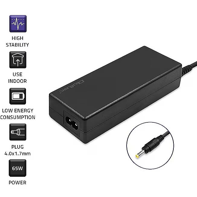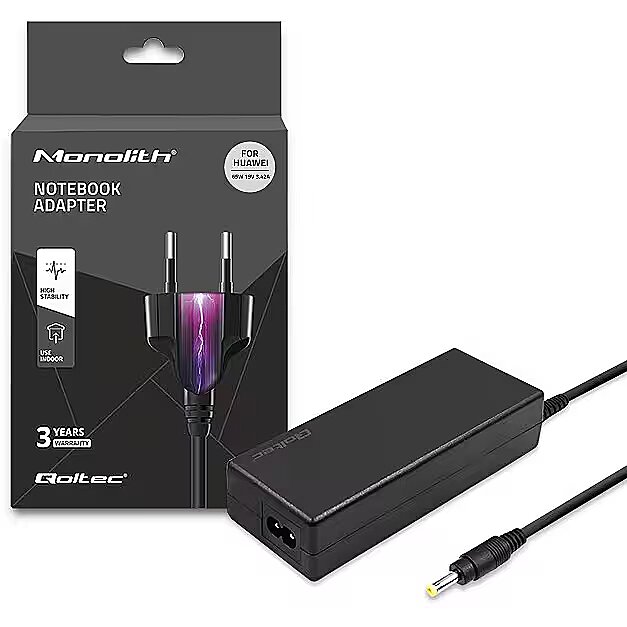 When it comes to power supplies, reliability is crucial. Select a Qoltec power adapter dedicated to Huawei laptops. It is made of the highest quality materials, and the technologies used in it allow for low energy consumption and high efficiency. Package contents power supply with 4.0*1.7 plug and velcro to organize the cable, thanks to which you can adjust the length of the cable.