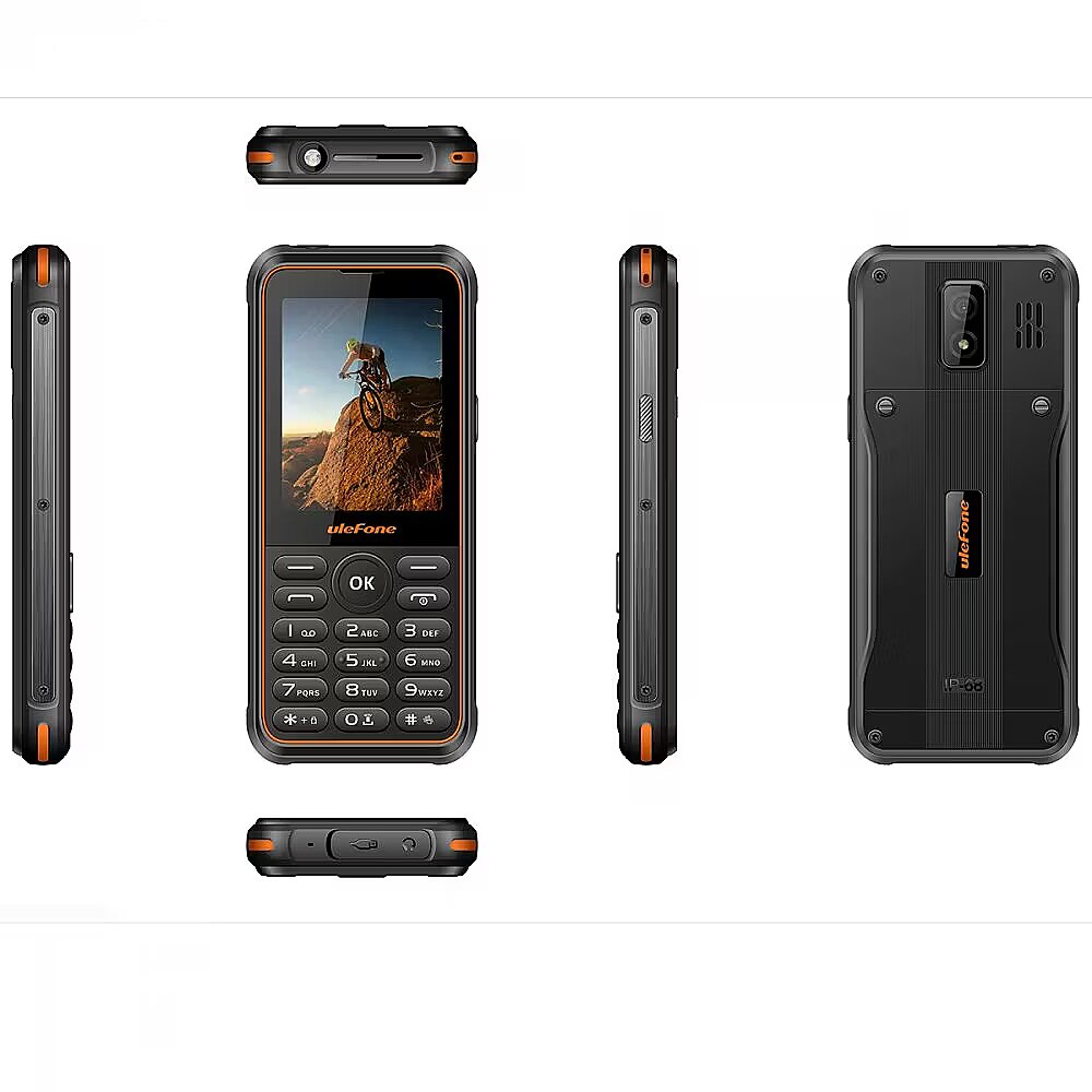 Description - Telefon Ulefone Armor Mini 3 2G (Czarny) Telefon Ulefone Armor Mini 3 to wytrzymały towarzysz ekstremalnych wypraw. Obudowa telefonu jest specjalnie uszczelniona i chroni wewnętrzne komponenty przed wymagającymi temperaturami, wstrząsami, upadkami oraz innymi trudnymi warunkami. Telefon ma formę prostokątną, a jego tył pokryty jest chropowatą, gumową powierzchnią, która zapewnia pewny chwyt. Ulefone Armor Mini 3 ma tradycyjne fizyczne przyciski. Wyświetlacz Ekran telefonu ma przekątną 2,8 cala i rozdzielczość 240 x 320 px. Mimo tego niewielkiego rozmiaru doskonale sprawdza się podczas dzwonienia, czy wysyłania wiadomości tekstowych. Wokół wyświetlacza znajduje się solidna, czarna ramka, która pełni dodatkową rolę ochronną. Procesor Za obsługę tego urządzenia odpowiada procesor MediaTek MT6261D, który skutecznie obsługuje podstawowe funkcje tego telefonu. Pojemność pamięci Telefon Ulefone Armor Mini 3 dysponuje 32 MB pamięci RAM i 32 MB pamięci wewnętrznej. Wspiera obsługę dwóch kart SIM. Udogodnienia Użytkownik Ulefone Armor Mini 3 może dodatkowo korzystać z latarki, radia FM, czy aparatu (rozdzielczość 0,3 MP), tworząc proste zdjęcia. Wytrzymałość baterii Pojemność baterii wynosi 2100 mAh. W trybie rozmowy powinna pracować do około 20 godzin, natomiast w trybie czuwania do 450 godzin. Odporność na zachlapania Produkt posiada certyfikat IP68, który oznacza, że urządzenie jest całkowicie odporne na pył i drobinki. Nie straszne są mu również przypadkowe drobne zalania, czy opady deszczu.
