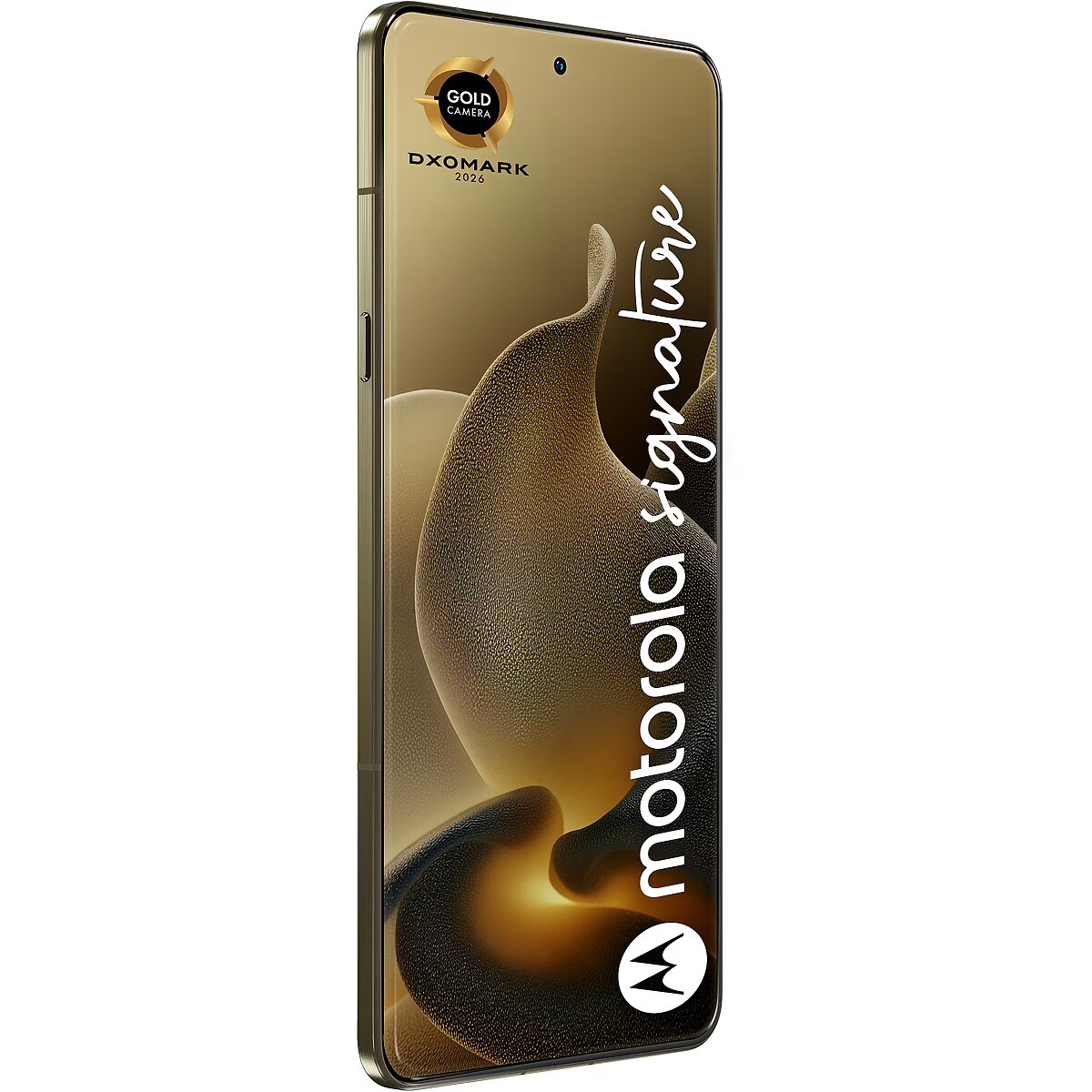 LongSummaryDescription - Motorola signature . Display diagonal: 17.2 cm (6.78"), Display resolution: 2780 x 1264 pixels. Processor family: Qualcomm Snapdragon, Processor model: 8 Gen 5. RAM capacity: 16 GB, RAM type: LPDDR5X, Internal storage capacity: 512 GB. Rear camera resolution (numeric): 50 MP, Rear camera type: Triple camera. SIM card capability: Dual SIM. Operating system installed: Android 16.0. Battery capacity: 5200 mAh. Product colour: Gold. Weight: 186 g