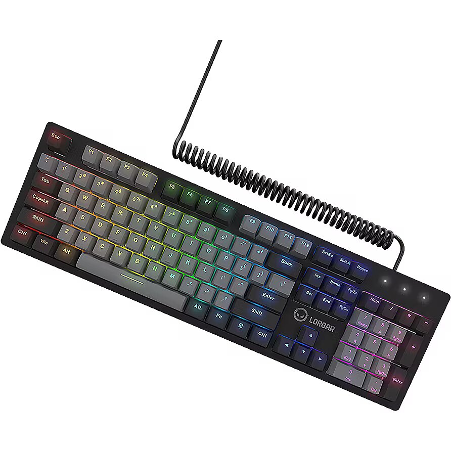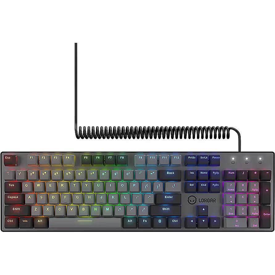 ProductDescription - LORGAR Azar 514, Wired mechanical gaming keyboard, RGB backlight, 1680000 colour variations, 18 modes, keys number: 104, 50M clicks, linear dream switches, spring cable up to 3.4m, ABS plastic+metal, magnetic cover, 450*136*39mm, 1.17kg, black, EN layout