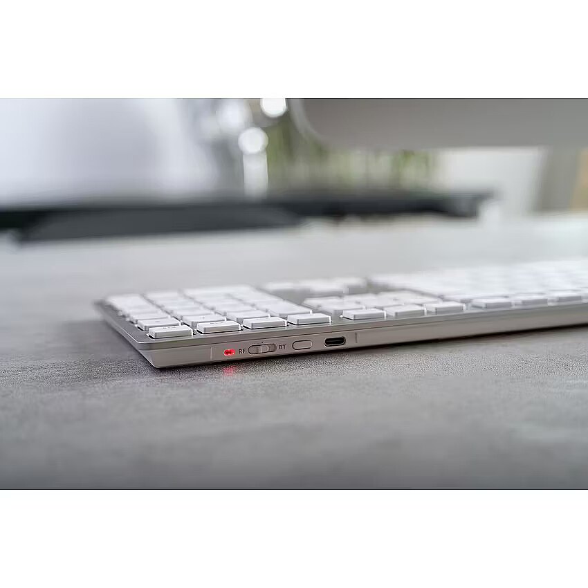 ShortSummaryDescription - CHERRY KW 9100 SLIM FOR MAC, Wired & Wireless, USB + Bluetooth, QWERTY, Silver