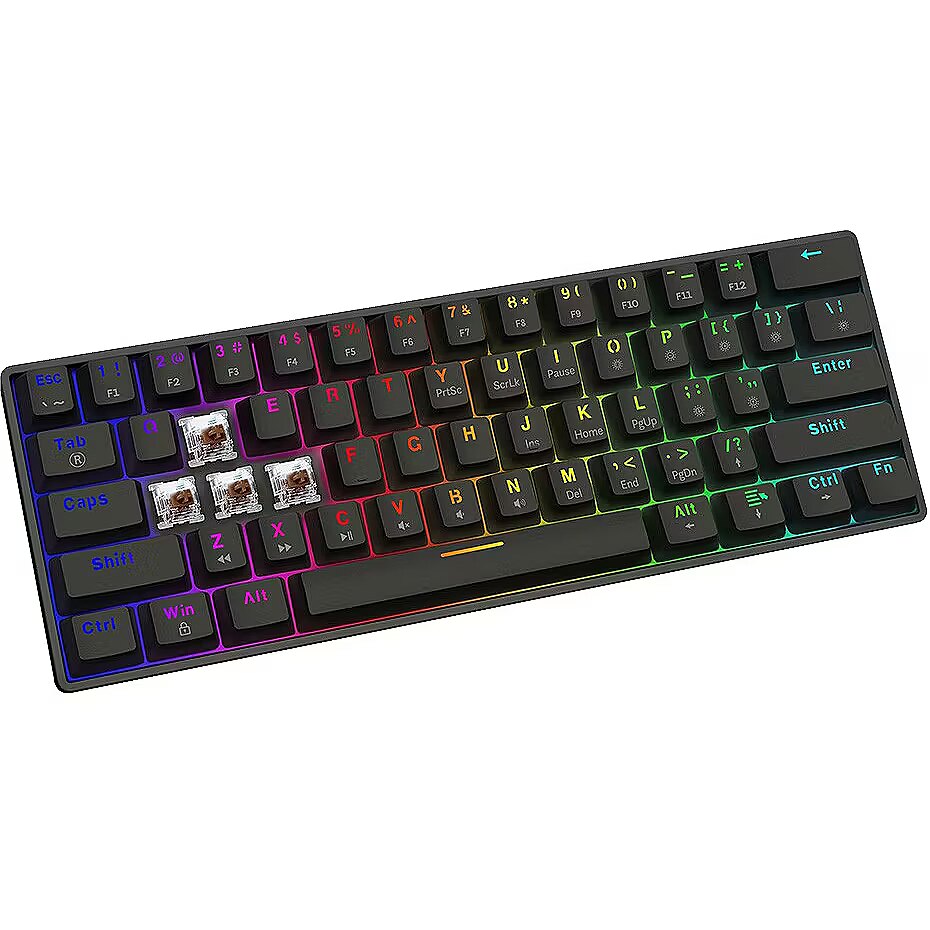 Description - Mechanical keyboard Blackout X2 OUTEMU BROWN Blackout X2 is a minimalist 60% mechanical keyboard designed for gamers who value precision, speed, and style. Its compact form factor without function keys, arrow keys, or a numeric keypad ensures maximum freedom of movement and more space for your mouse. Its perfect for fast-paced gameplay and tournaments. Full N-Key Rollover & Anti-Ghosting Forget about accidental keystrokes and ghosting. With full N-Key Rollover and anti-ghosting, every keypress registers with pinpoint accuracy. Press a key? It works no matter how many keys you press at once. Even during the most intense gameplay, you can count on total responsiveness. Hot Swap Function Love customization? This keyboard gives you full freedom. Thanks to the Hot Swap feature, you can quickly and easily swap switches no soldering required. Compatible with 3-pin switches, it allows you to tailor the keyboards feel and performance to your exact preferences. OUTEMU Switches Choose the switches that match your gaming and typing style.