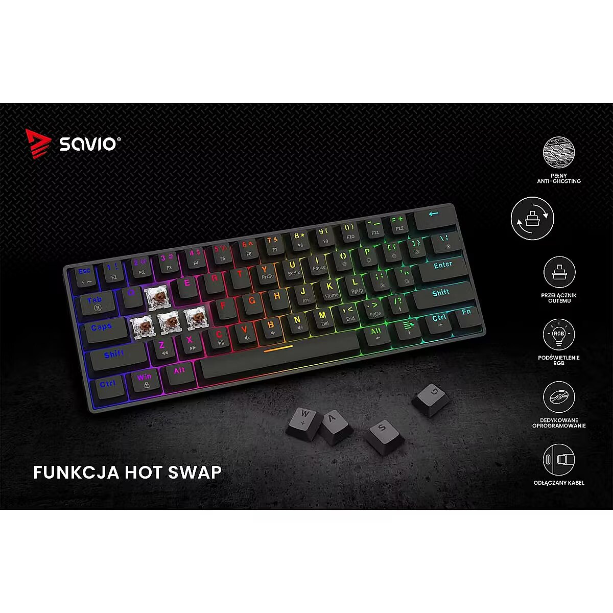 productName - SAVIO BLACKOUT X2 Mechanical Keyboard OUTEMU Brown, Hot Swap