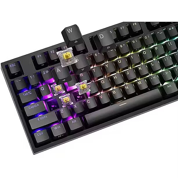 ShortDescription - klawiatura mechaniczna | Qwerty | USB | 11 klawiszy multimedialnych | podświetlenie RGB | Gateron Yellow Pro | Hot-Swap