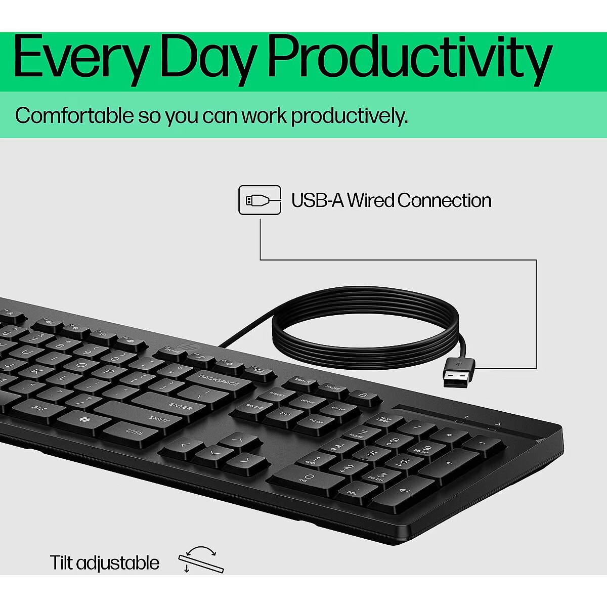 ProdDesc - HP 125 G2 USB Wired Keyboard, Sanitizable, Copilot Key - Black - US ENG (BULK of 12 pcs)
