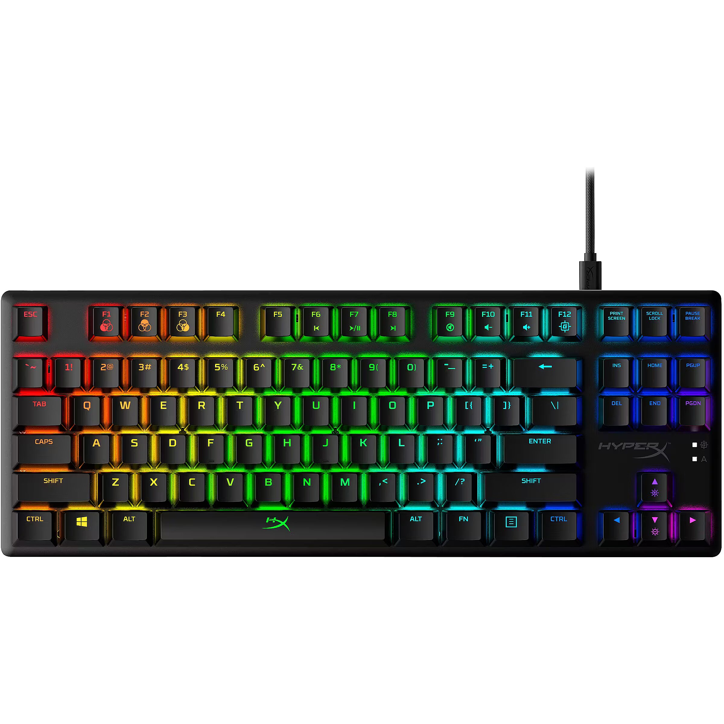 LongDesc - Tenkeyless keyboard featuring custom HyperX mechanical switches.The HyperX Alloy Origins Core is an ultra-compact, sturdy tenkeyless keyboard featuring custom HyperX mechanical switches designed to give gamers the best blend of style, performance, and reliability. These key switches have exposed LEDs for stunning lighting with an actuation force and travel distance elegantly balanced for responsiveness and accuracy. Alloy Origins Core is built with a full aluminum body so it stays rigid and stable when keystrokes are flying, and also features keyboard feet that let you choose from three different tilt levels. Its compact TKL design frees up space for mouse movement in desktop setups where space is at a premium, and it also features a detachable USB-C cable for supreme portability. Customize your lighting, craft macros, and adjust Game Mode with HyperX NGENUITY Software. This powerful, yet easy-to-use program lets you set per-key lighting, layer dazzling lighting effects, and add scores of other personalized touches to your NGENUITY-compatible products.