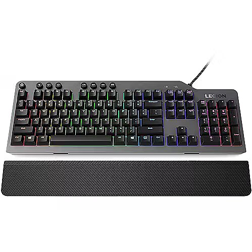Short summary - The Legion K500 RGB Mechanical Gaming Keyboard is a full-sized, wired gaming keyboard that?s designed for comfort and simplicity. The minimalistic design has eight essential keys, too. The mechanical switch delivers fantastic and consistent comfort for daily gaming. The keyboard is 104-keys roll over, all keys programmable, and is well-built with a detachable palm rest.