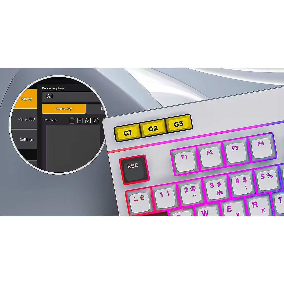 LongProductName - USB, 1000 Hz, RGB, 100 mA, ABS Keycaps, 1.8 m, Membrane Switches, Windows 10/11, White (white-grey keycaps)