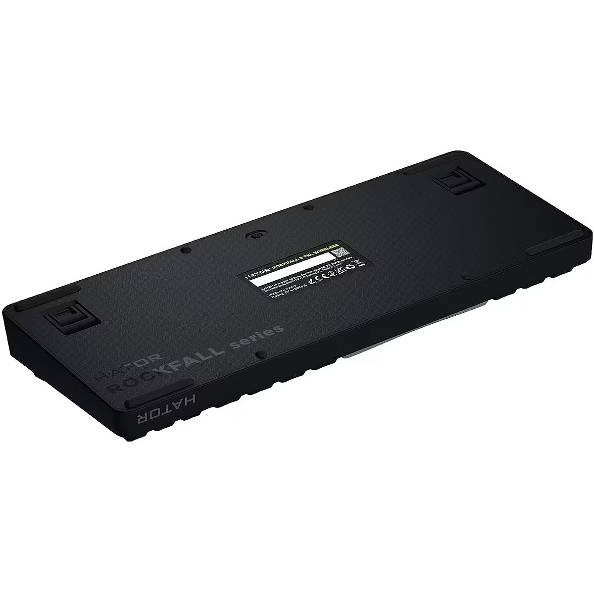 LongDesc - HATOR Rockfall 3 TKL Wireless is the perfect choice for those seeking high performance and convenience in a compact form factor. With three connectivity options, long battery life, and well-thought-out internal architecture, this keyboard will be a reliable companion in any situation.Pre-lubricated HATOR® Aurum linear mechanical switches provide exceptionally smooth keystrokes and effortless gaming comfort. High-quality components, such as the nylon base, POM plastic stem, and contacts with palladium alloy coated in composite gold, enhance durability and reliability.Hand-lubricated premium POM plastic stabilizers reduce keypress noise, ensuring a pleasant tactile experience and precision in gameplay.Use the keyboard the way you want! Wireless 2.4 GHz mode provides fast signal transmission; versatile Bluetooth connection allows you to use the keyboard with the greatest number of base devices; and USB Type-C cable connection comes in handy when the keyboard needs recharging.The gasket mount design brings an inspiring typing feel.Durable PBT keycaps and vibrant backlighting guarantee long-lasting use without fading and clear, illuminated symbols.The hot-swappable switch system allows easy replacement for customizing the keyboard to meet your personal needs and preferences.The multilayer vibration and noise insulation absorbs excess noise and vibration, allowing you to focus entirely on gaming or work.100% Anti-ghosting and N-Key Rollover functions enable simultaneous pressing of any number of keys without errors, essential for dynamic gameplay.Save and play!The built-in keyboard memory lets you save macro and lighting settings for instant setup.RGB backlighting with 16.8 million colors, individually adjustable for each key, offers limitless personalization options for your keyboard.The detachable, flexible USB Type-A to USB Type-C cable provides ease of use and transport, prolonging the cable’s lifespan.A broad range of customization options through QMK and the VIA web interface allows you to tailor the keyboard to your needs on any operating system, unlocking a wide array of features.
