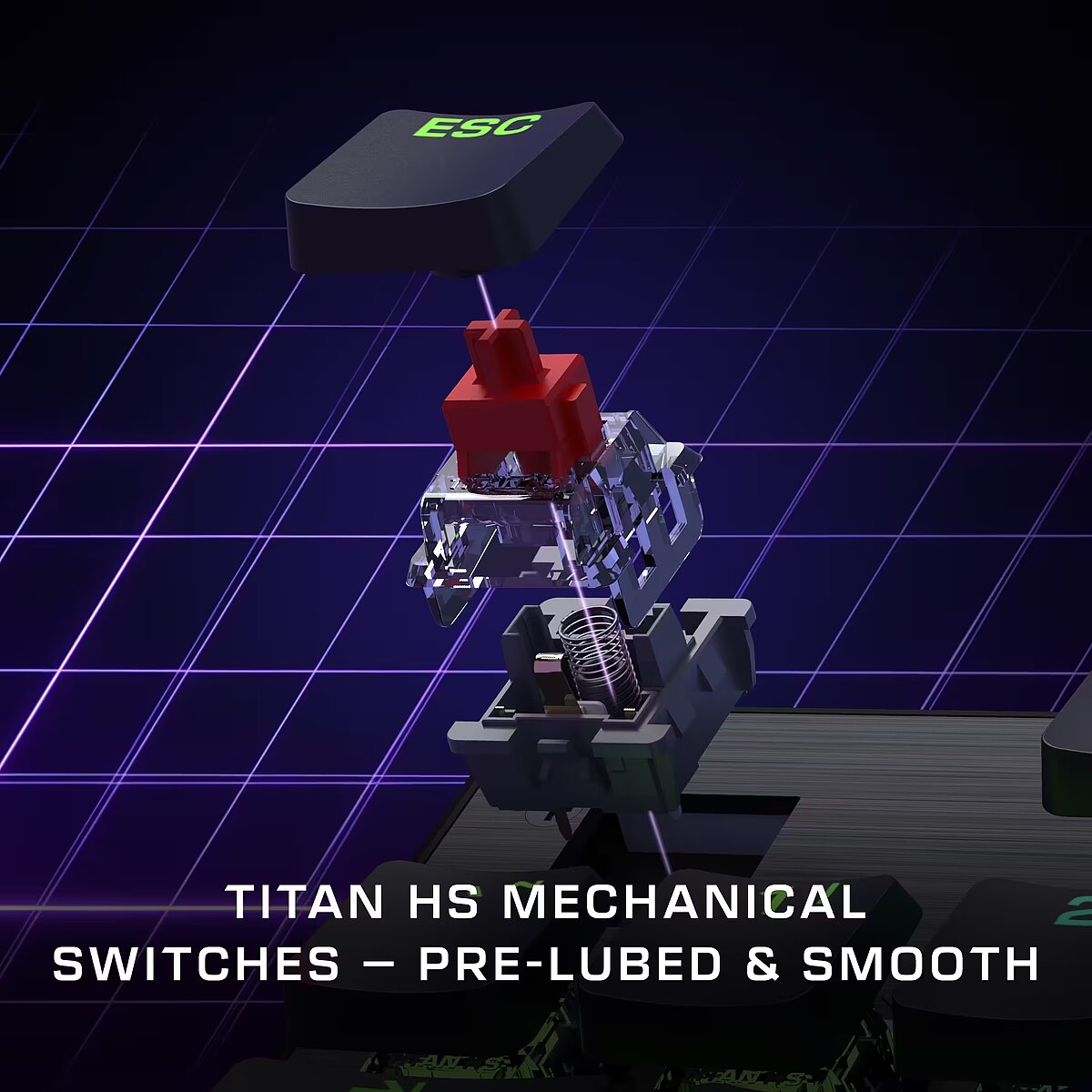 Free up desk space and increase mouse range for competitive FPS and MOBA gameplay with a sleek, portable design. TITAN HS Mechanical Switches