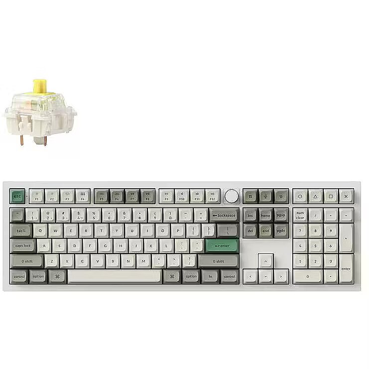 Summary - Keychron Q6 Max. Keyboard form factor: Full-size (100%). Keyboard style: Straight. Connectivity technology: Wired & Wireless, Device interface: USB + RF Wireless + Bluetooth, Keyboard key switch: Mechanical, Keyboard layout: QWERTY, Keyboard number of keys: 108. Backlight type: RGB LED. Recommended usage: Universal. Product colour: White