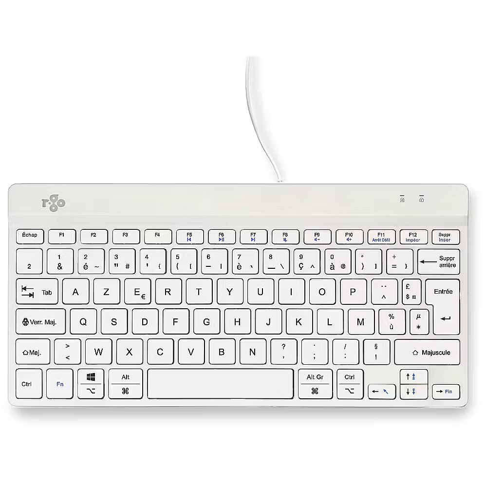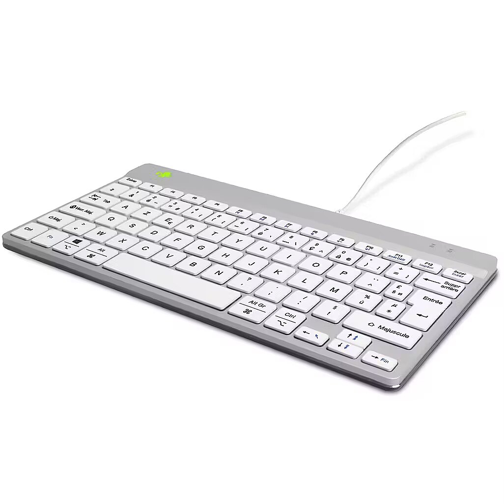 LongSummaryDescription - R-Go Tools Ergonomic keyboard R-Go Compact Break, compact keyboard with break software, AZERTY (FR), wired, white. Keyboard form factor: Mini. Keyboard style: Straight. Connectivity technology: Wired, Device interface: USB, Keyboard key switch: Scissor key switch, Keyboard layout: AZERTY. Cable length: 1.6 m. Recommended usage: Office. Product colour: White