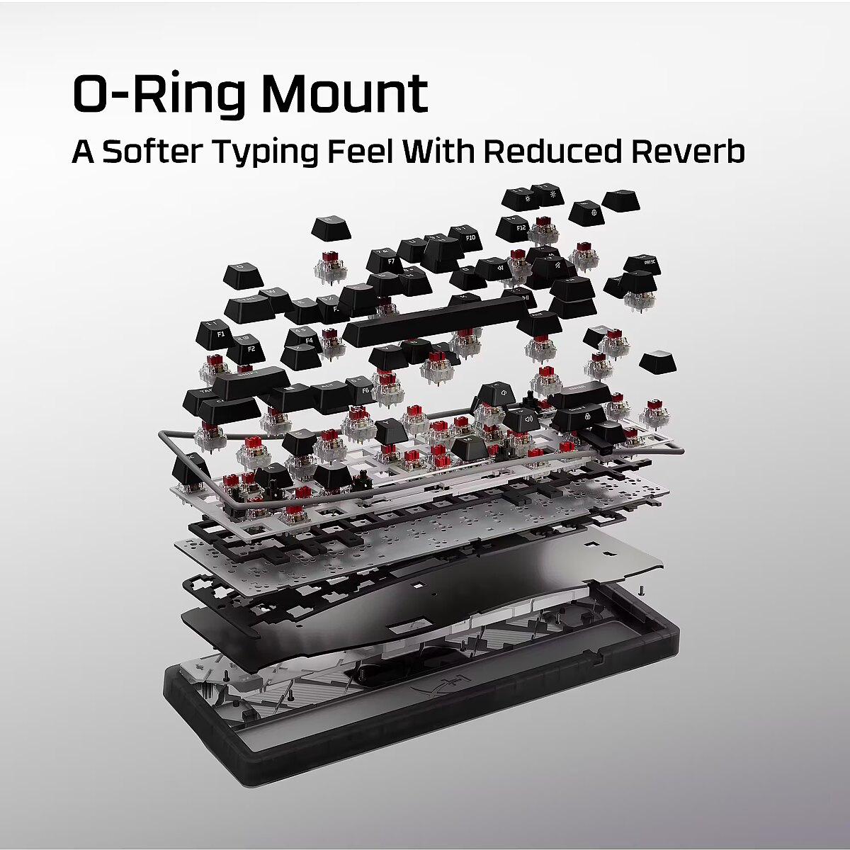 LongDesc - Change Your PlayLock in and game on with the Origins 2 65, a compact gaming keyboard designed to be personalized. Featuring an easy-swap housing and hot swap switches, Origins 2 can be customized to create your own unique typing and gaming platform. Change keycaps, switches, and the housing anytime![1] Origins 2 65 maintains all the essential keys, removing unnecessary inputs to maintain a small footprint with high efficiency. The 65% layout takes up less space on your desk but keeps you in the game. Under the hood, you’ll find a silicon o-ring mount and polycarbonate plate to absorb vibrations and reduce reverb for a peaceful typing experience. But this keyboard isn’t just for typists. With up to 8k polling, Origins 2 will communicate input back to your PC up to 8000 times per second, making sure every keystroke is captured. The high-profile housing is equipped with flip-down feet so you can adjust your angles for comfort and ideal ergonomics. This keyboard comes equipped with HyperX Linear Red switches that provide swift, smooth feedback and snappy 1.8 mm actuation. HyperX switches use POM half-wall stems to add stability and reliability for up to 80 million keystrokes, and you can replace those switches whenever the mood strikes. The hot swap sockets are compatible with most 5 or 3-pin mechanical keyboard switches. Origins 2 is fully customizable with HyperX NGENUITY software. You can easily remap key functions, assign macros, customize RGB effects, and create up to 3 profiles for maximum functionality in any situation.