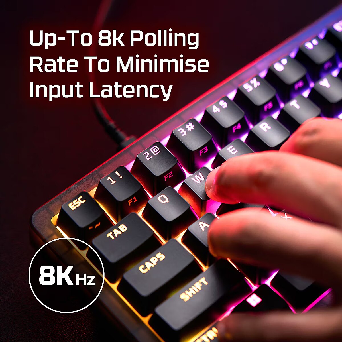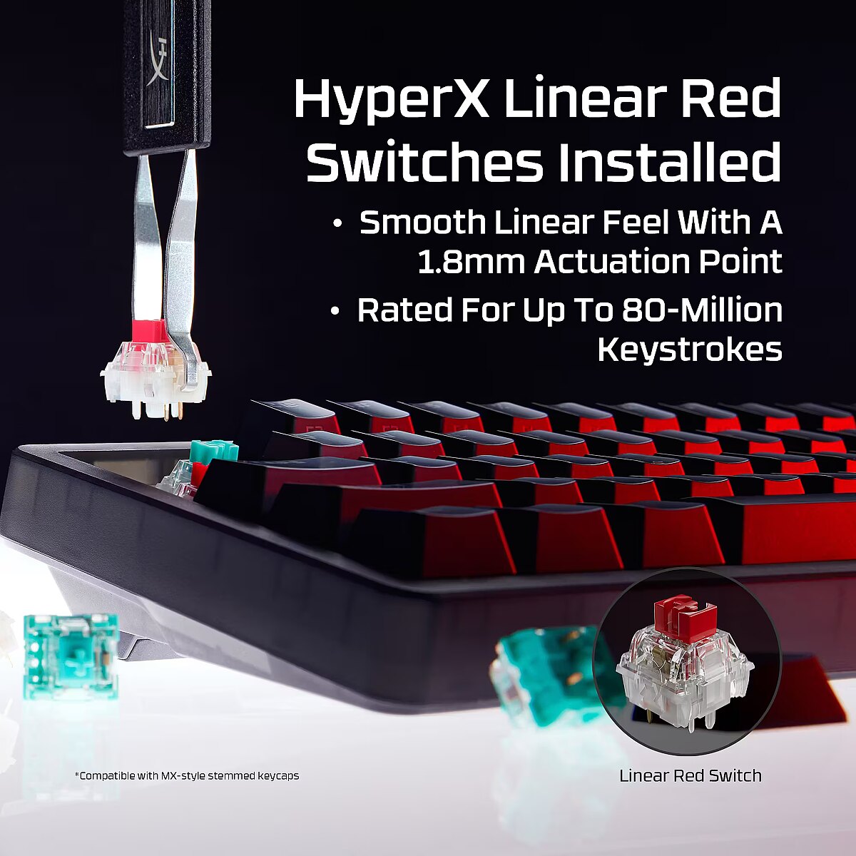 Lock in and game on with the Origins 2 65, a compact gaming keyboard designed to be personalized. Featuring an easy-swap housing and hot swap switches, Origins 2 can be customized to create your own unique typing and gaming platform. Change keycaps, switches, and the housing anytime! Origins 2 65 maintains all the essential keys, removing unnecessary inputs to maintain a small footprint with high efficiency. The 65% layout takes up less space on your desk but keeps you in the game. Under the hood, you'll find a silicon o-ring mount and polycarbonate plate to absorb vibrations and reduce reverb for a peaceful typing experience. But this keyboard isnt just for typists. With up to 8k polling, Origins 2 will communicate input back to your PC up to 8000 times per second, making sure every keystroke is captured. The high-profile housing is equipped with flip-down feet so you can adjust your angles for comfort and ideal ergonomics. This keyboard comes equipped with HyperX Linear Red switches that provide swift, smooth feedback and snappy 1.8 mm actuation. HyperX switches use POM half-wall stems to add stability and reliability for up to 80 million keystrokes, and you can replace those switches whenever the mood strikes. The hot swap sockets are compatible with most 5 or 3-pin mechanical keyboard switches. Origins 2 is fully customizable with HyperX NGENUITY software. You can easily remap key functions, assign macros, customize RGB effects, and create up to 3 profiles for maximum functionality in any situation.