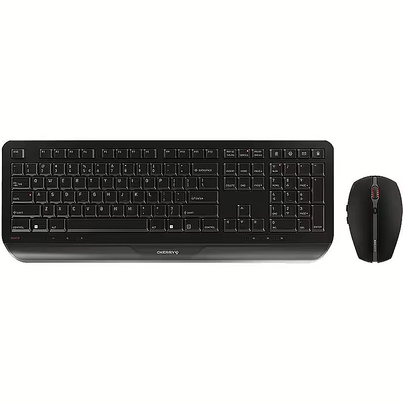 LongSummaryDescription - CHERRY GENTIX DESKTOP. Keyboard form factor: Full-size (100%). Keyboard style: Straight. Connectivity technology: Wireless, Device interface: RF Wireless, Keyboard layout: QWERTY, Keyboard number of keys: 114. Wrist rest. Recommended usage: Home/Office. Product colour: Black. Mouse included